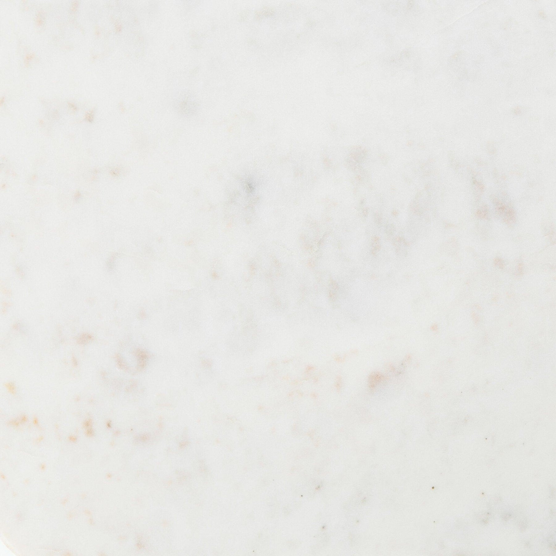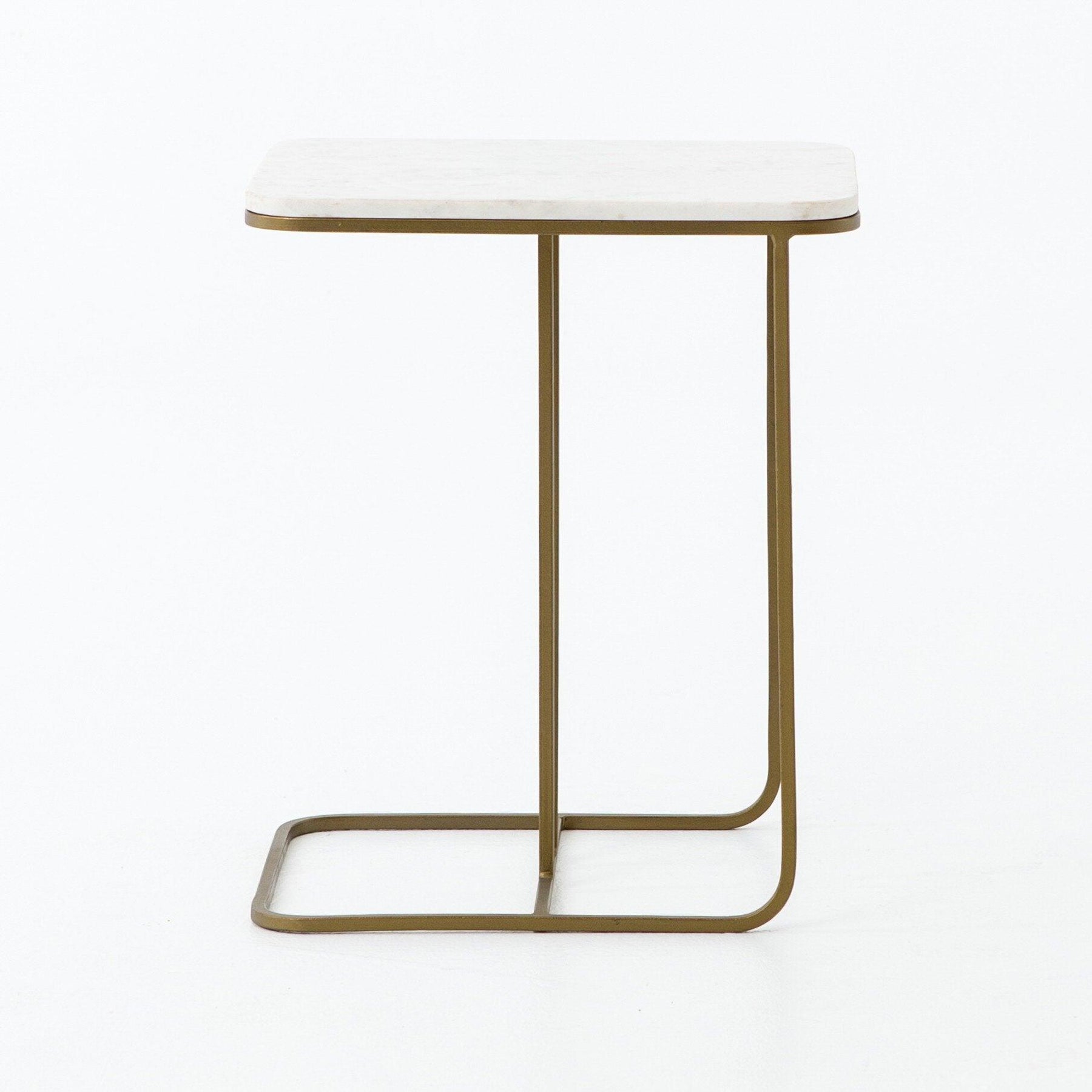 Add a pop of marble in a classic polished white. The matte brass C-table base slides perfectly over a sofa adding an easy surface.