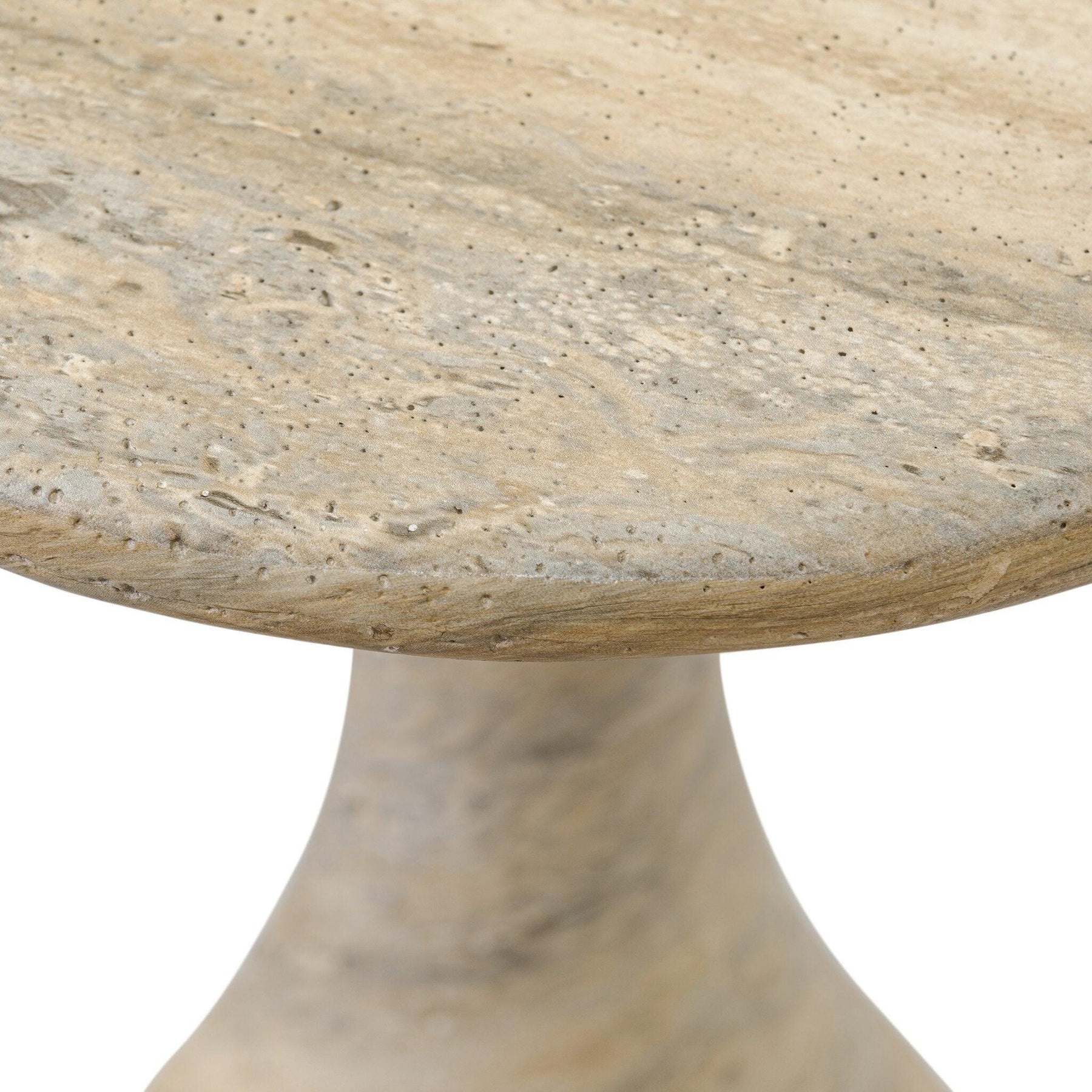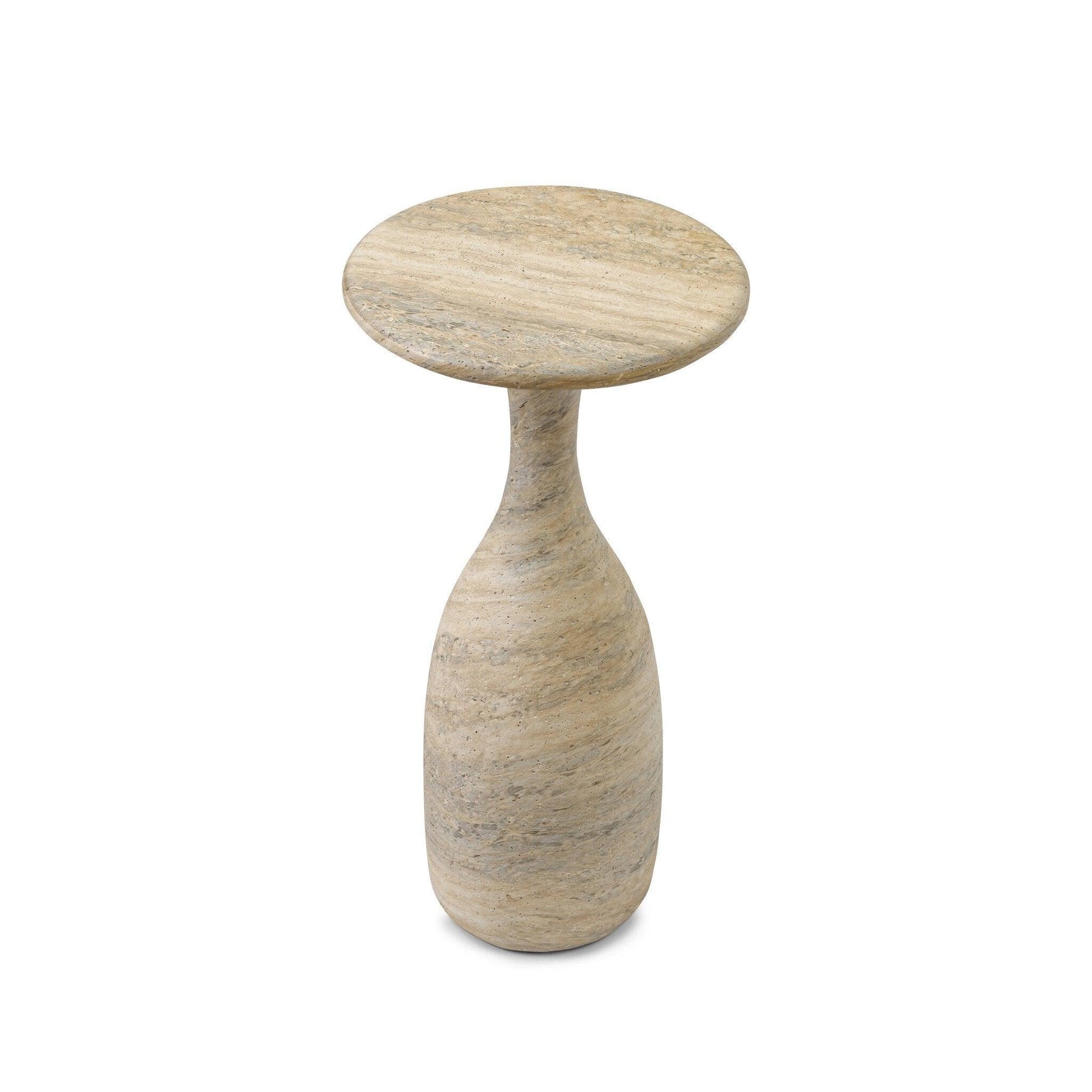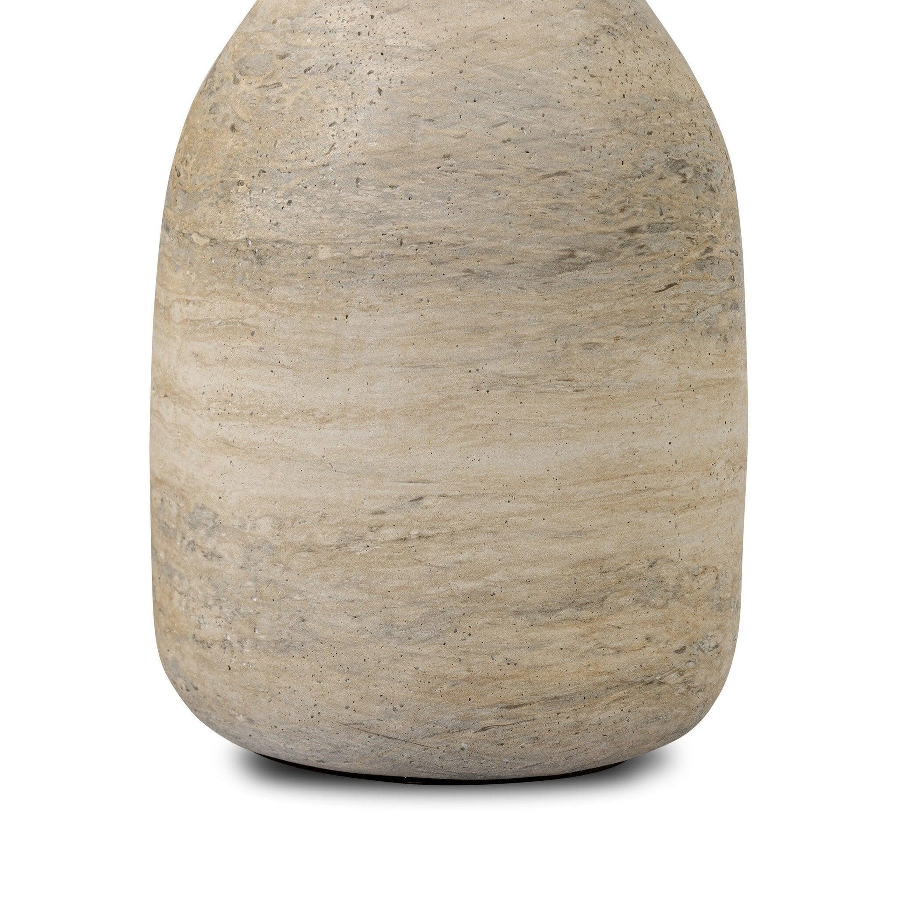 Inspired by antiques a tall slim end table features a sculptural silhouette that draws upon the shape of a classic vessel. Made from concrete and finished with a stone-like water transfer technique bringing a beautifully textured look to your space.