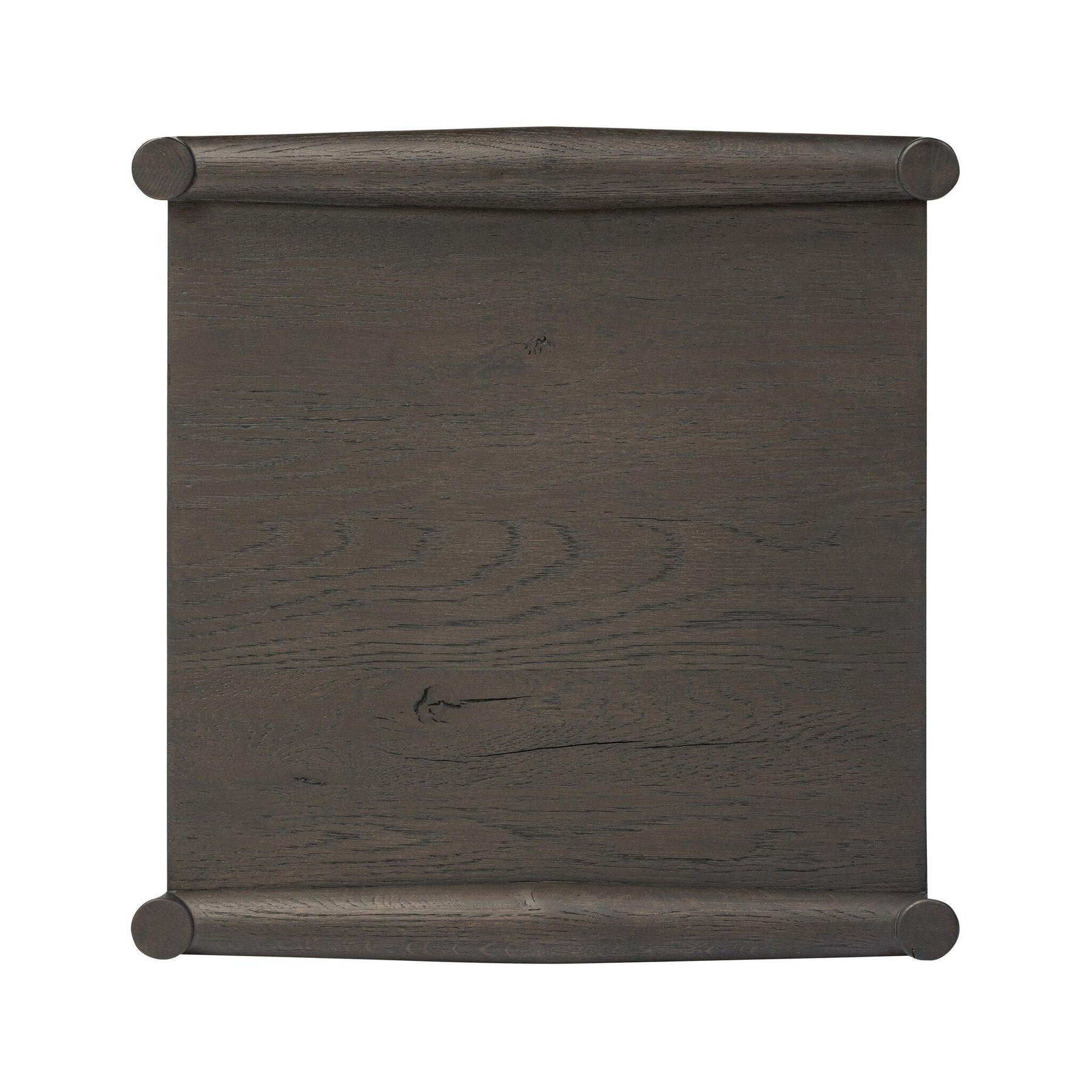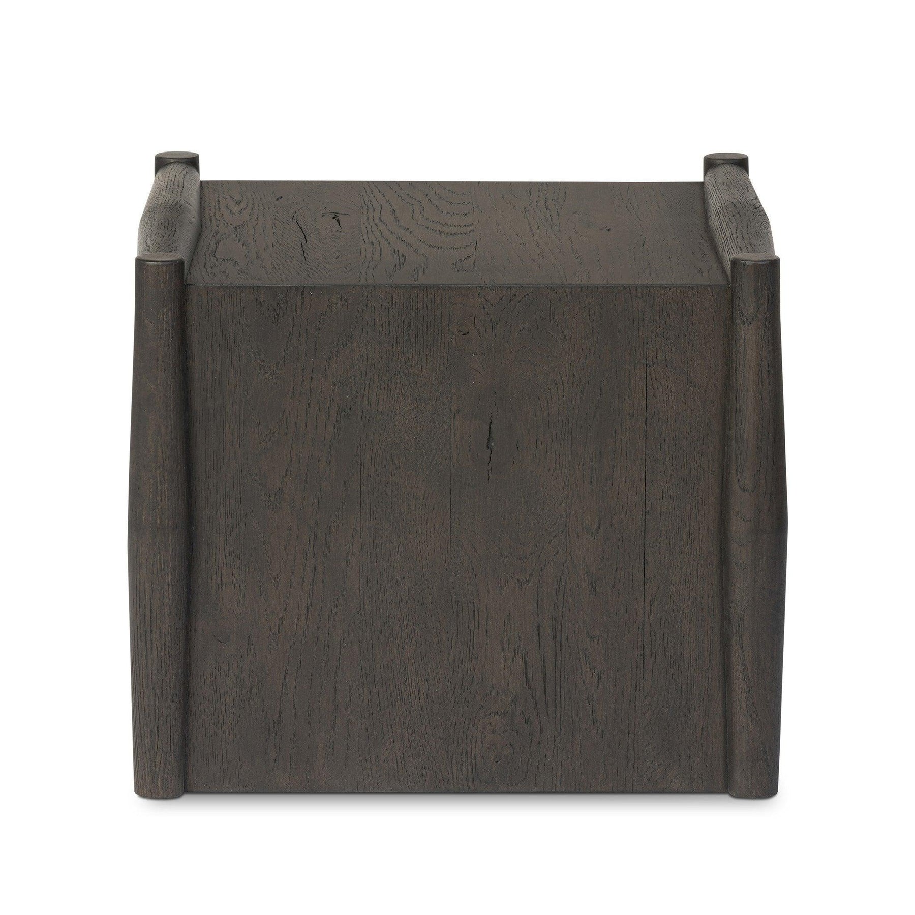 Traditional reimagined. Made from smoked black oak a simply structured end table brings a streamlined look to the living room.