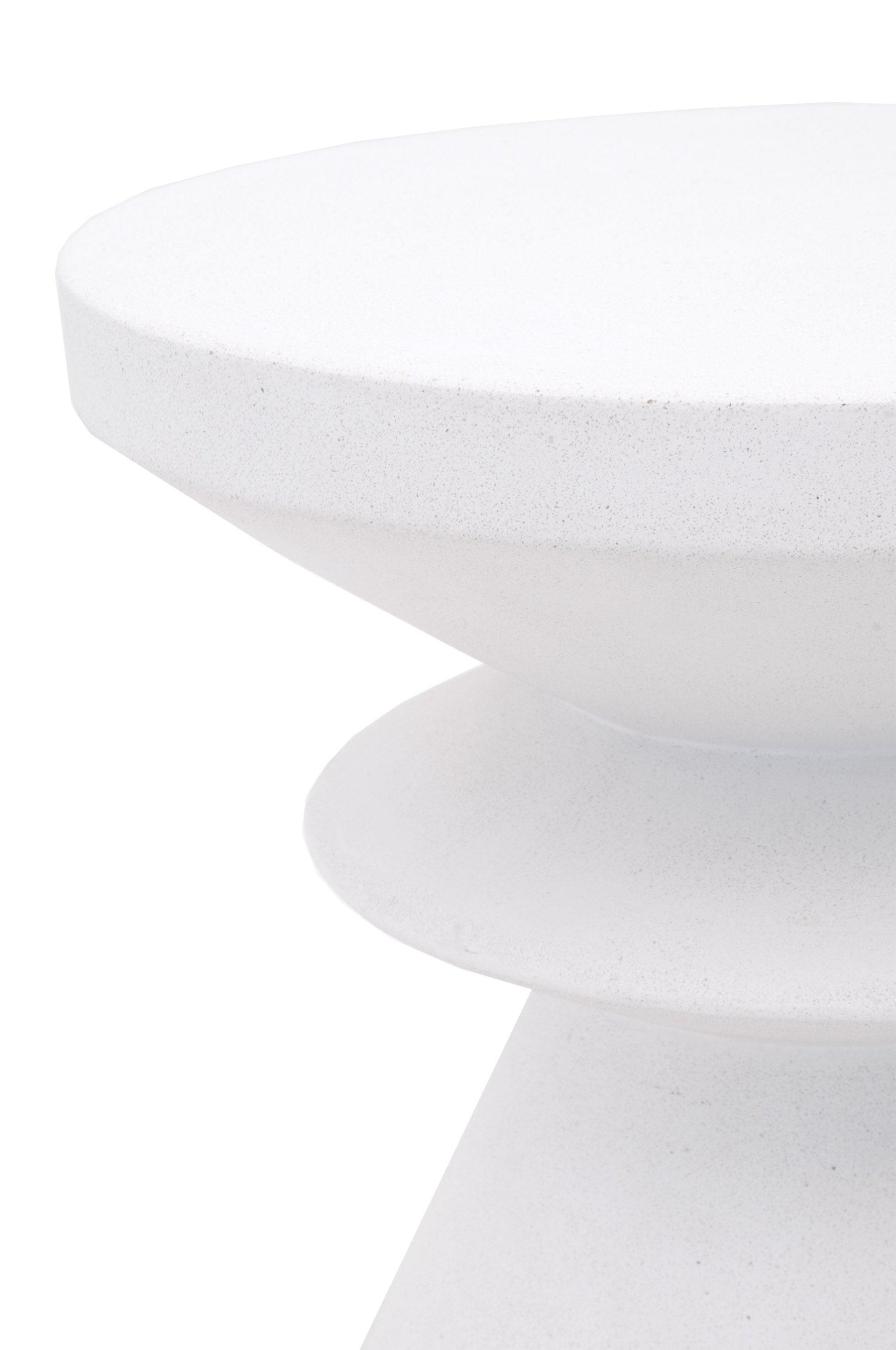 This sleek concrete accent table is suitable for indoor and outdoor use. Constructed with nano-sealed concrete, the table is meant to prevent most surface stains and be durable for outdoor use (not recommended for extreme weather conditions and excessive rain or moisture). It is designed with a unique shape that resembles a life-size pawn chess piece. It’s gorgeous ivory coloring contributes to making this table a proper fit with many interior and outdoor styles.