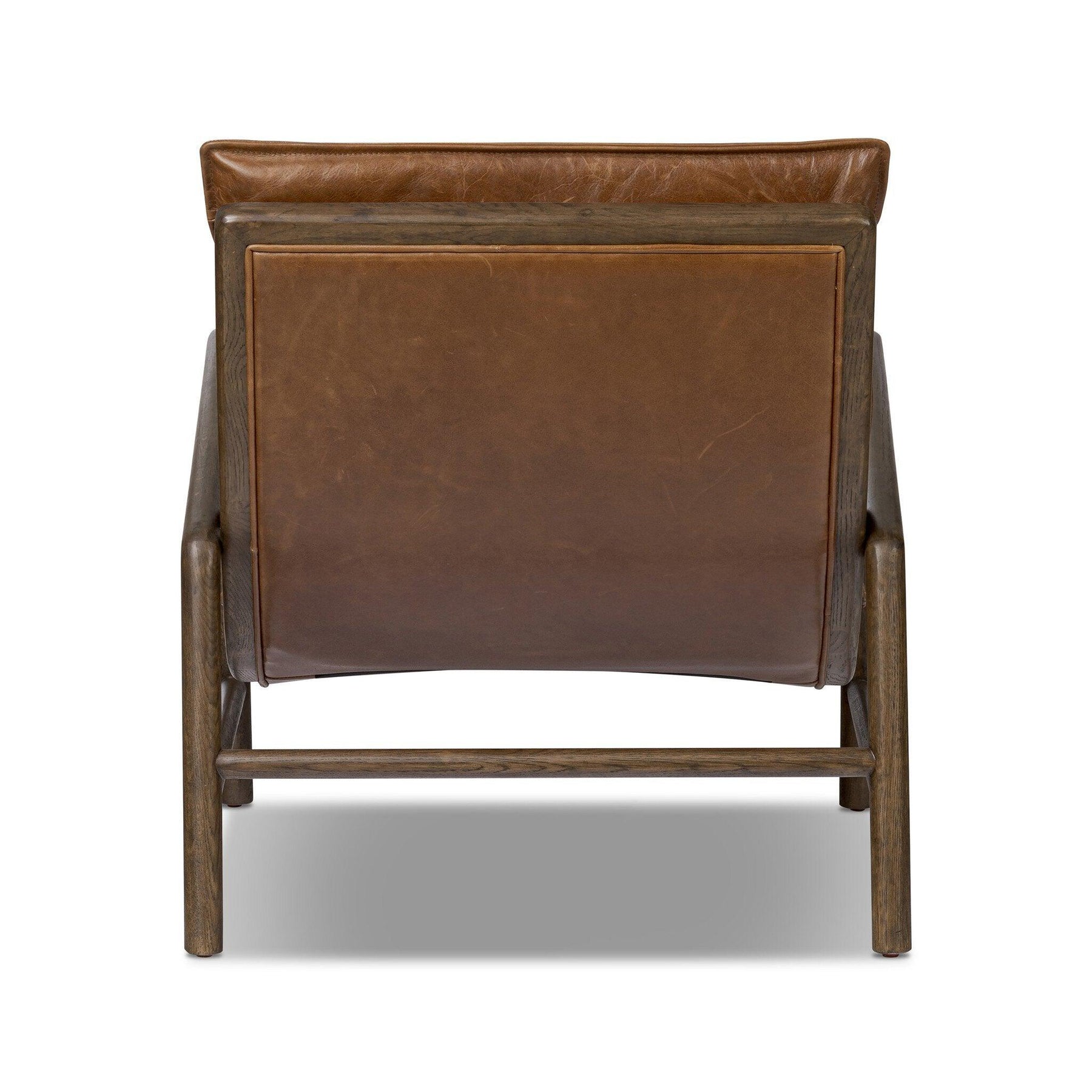 Relax into your space with effortlessly cool seating of molasses top-grain leather framed out by an exposed oak frame. Curved cushioning and rounded dowel arms are thoughtfully crafted for comfortable lounging.