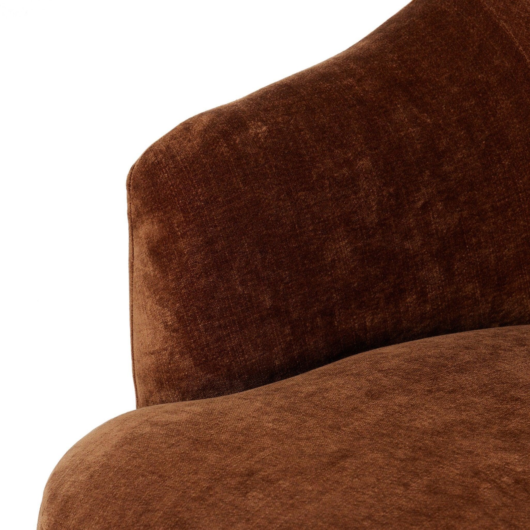 A traditional shape with modern styling turned wooden legs complement the soft curves of this lounge-worthy chair. A chenille-like velvet offers comfort with track-resistant livability.