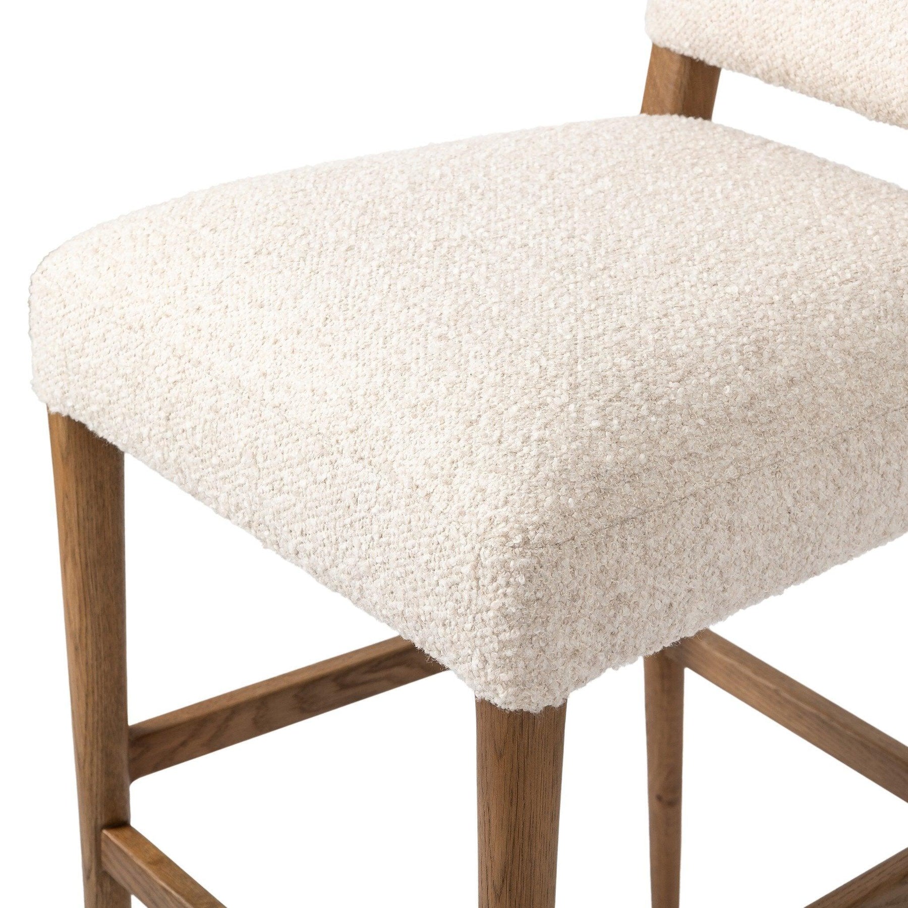 A heritage design gets a modern twist. Simple tapered legs of warm oak mark this dining room chair's traditional form while an arched seat back with off-white upholstery updates this comfortable seating style perfectly sized for the counter. Performance fabrics are specially created to withstand spills stains high traffic and wear ensuring long-term comfort and unmatched durability.
