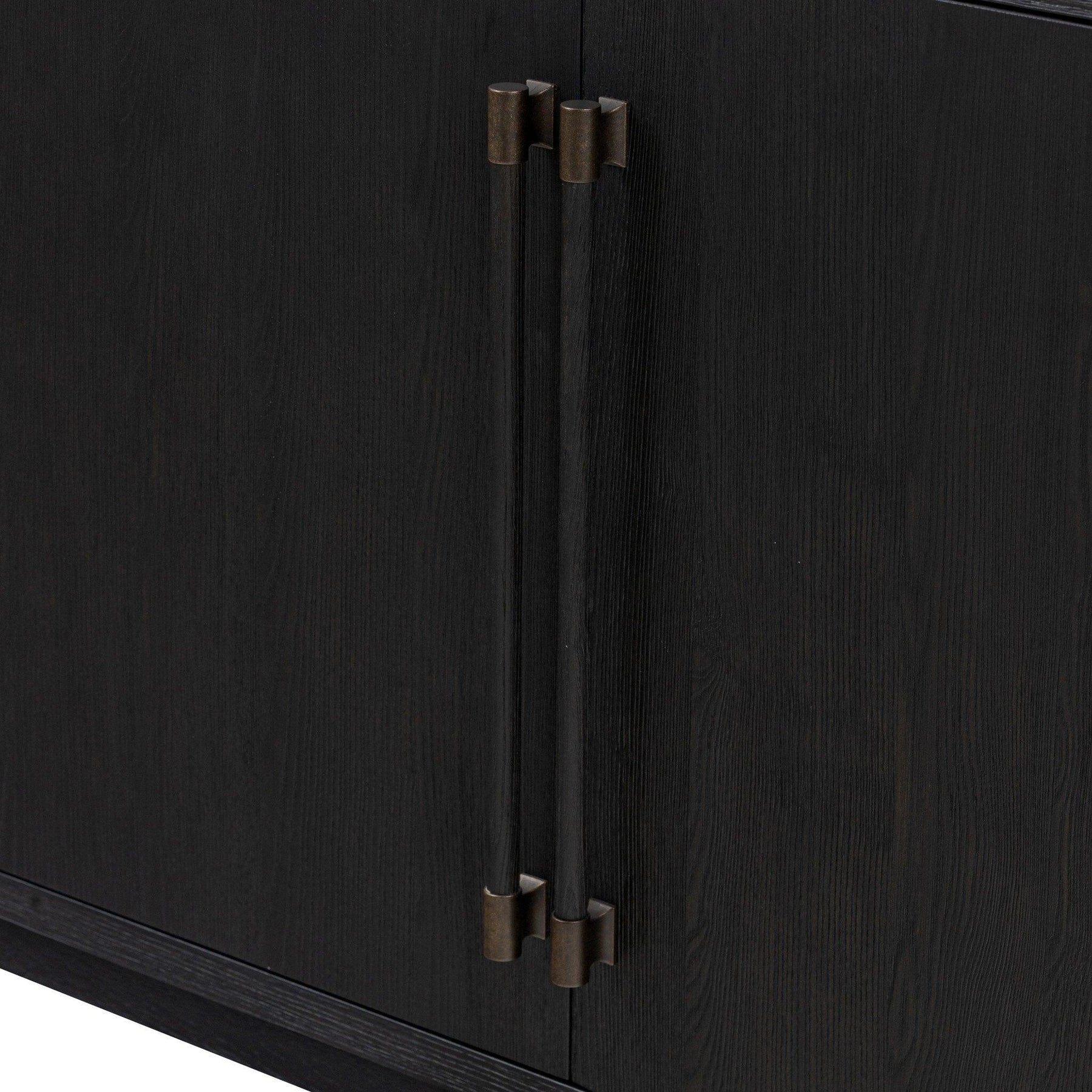 Made from black-finished ash with bronzed hardware a clean-lined sideaboard is rich with natural presence. Step detailing adds an architectural touch to this streamlined shape.