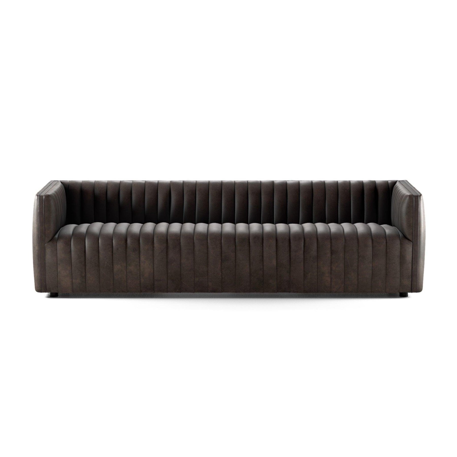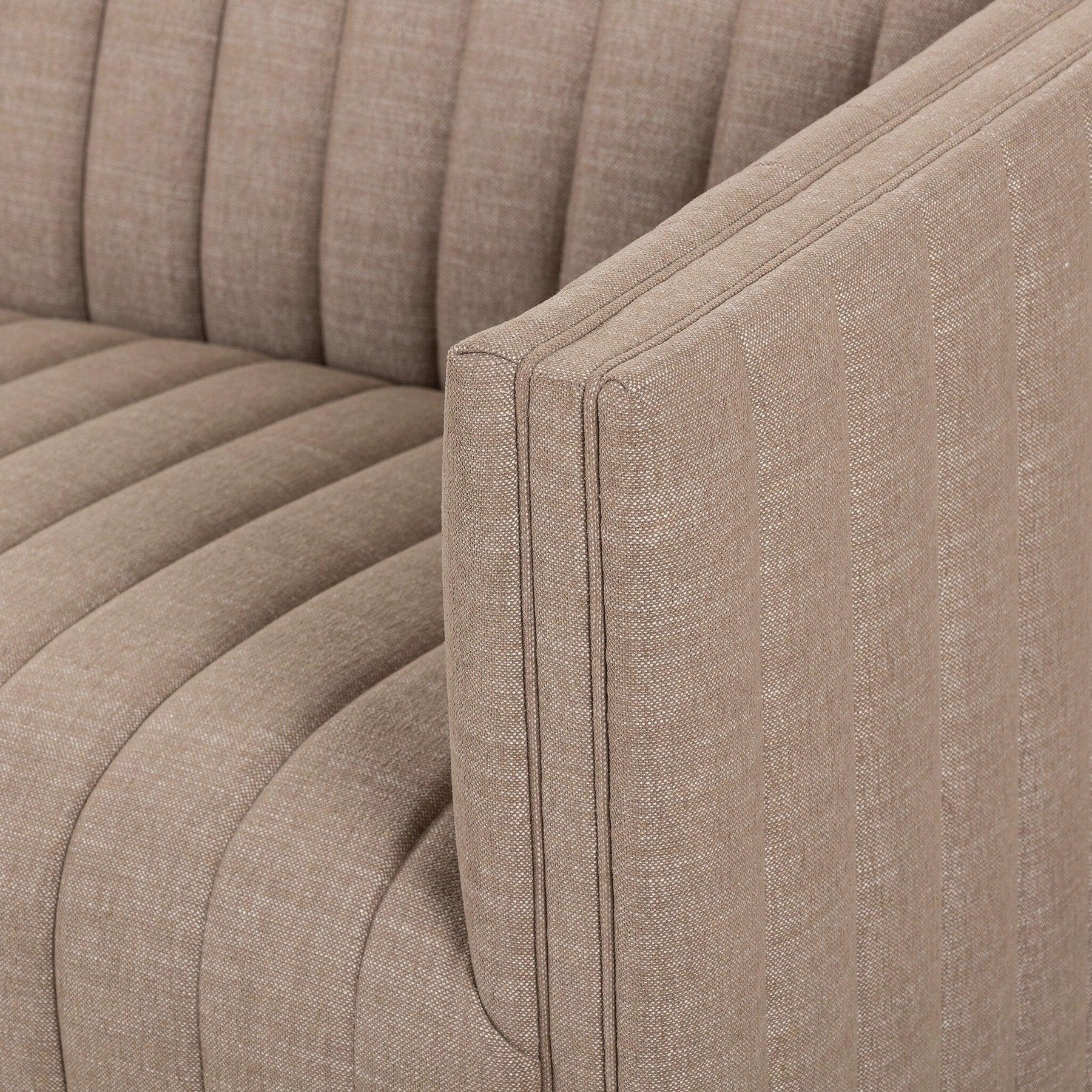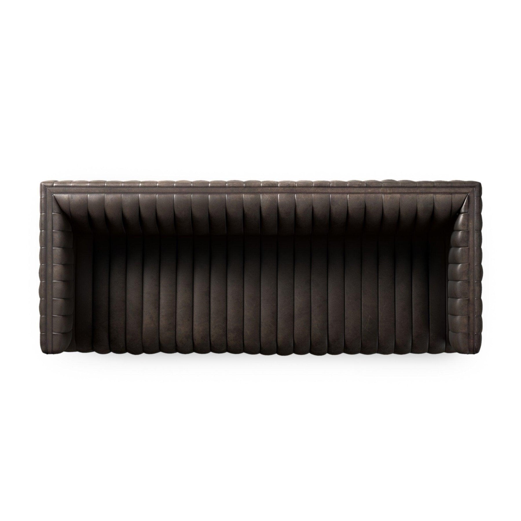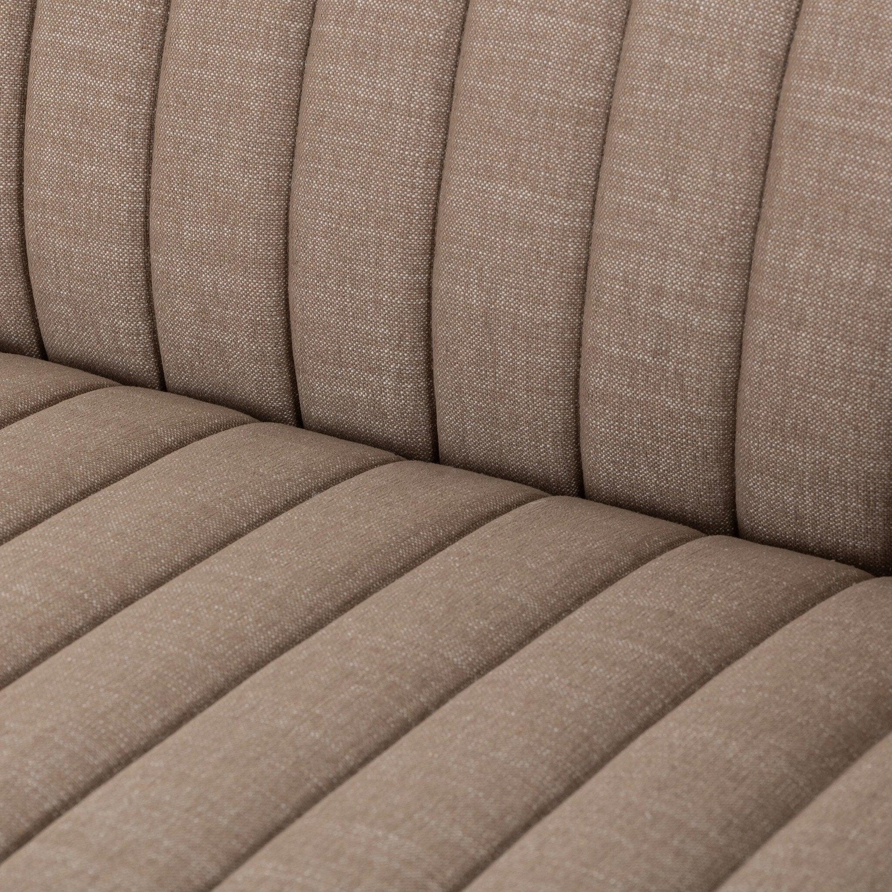 Velvety poly-blend seating takes on dramatic channeling and rich navy hue for trend-forward texture and sumptuous sit.