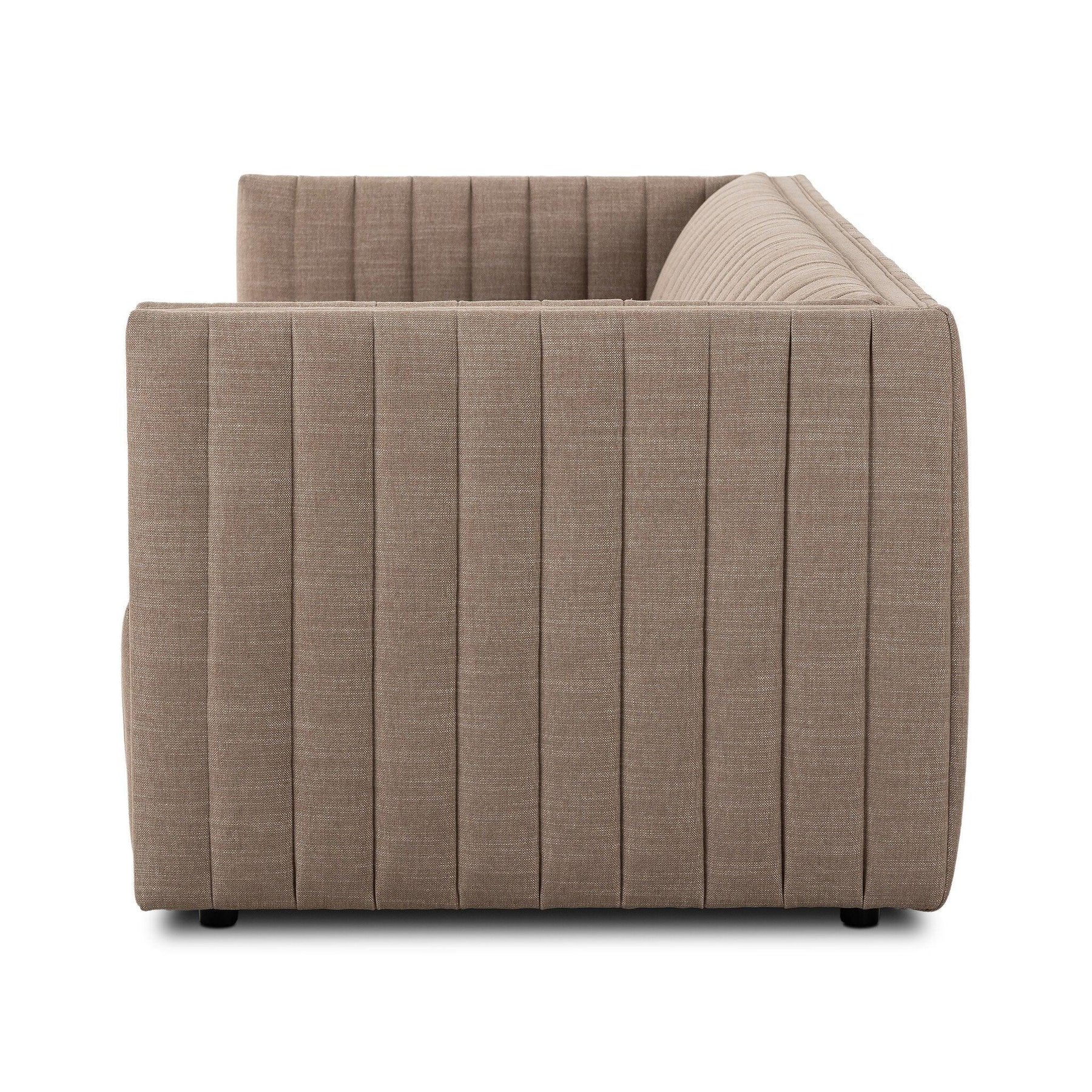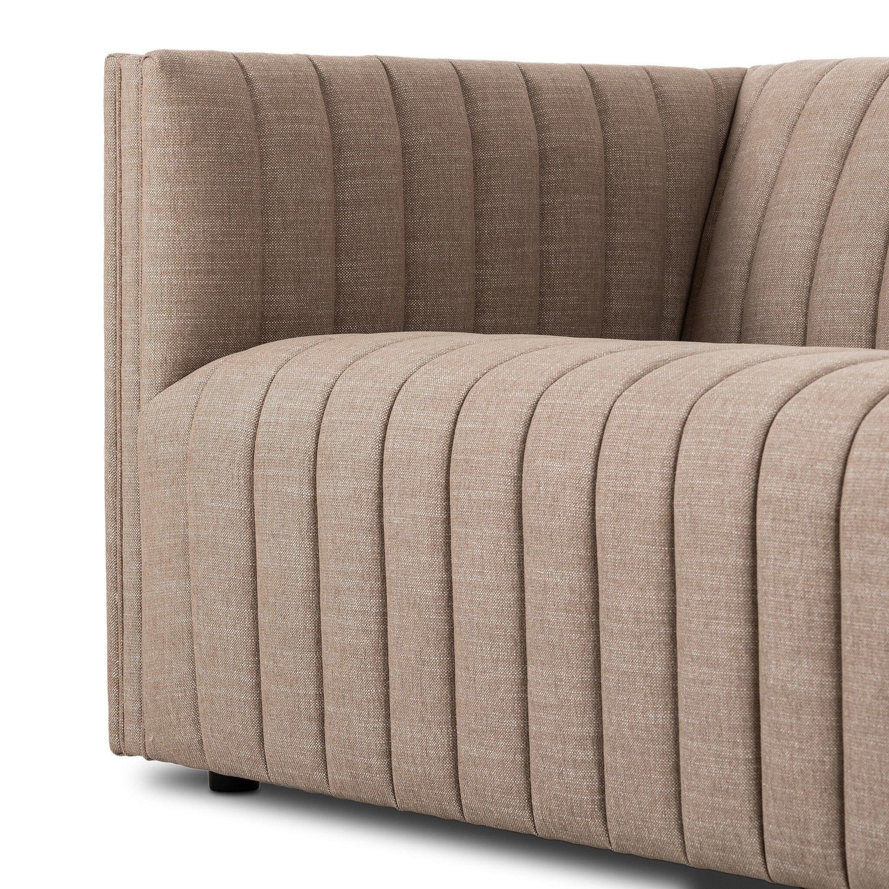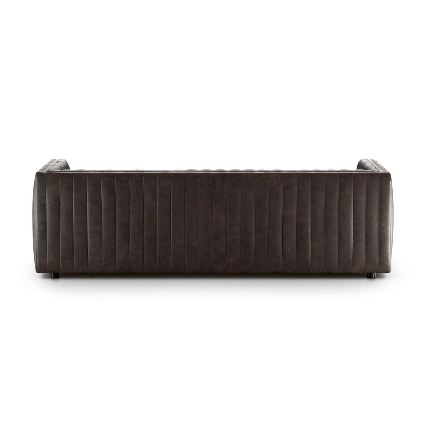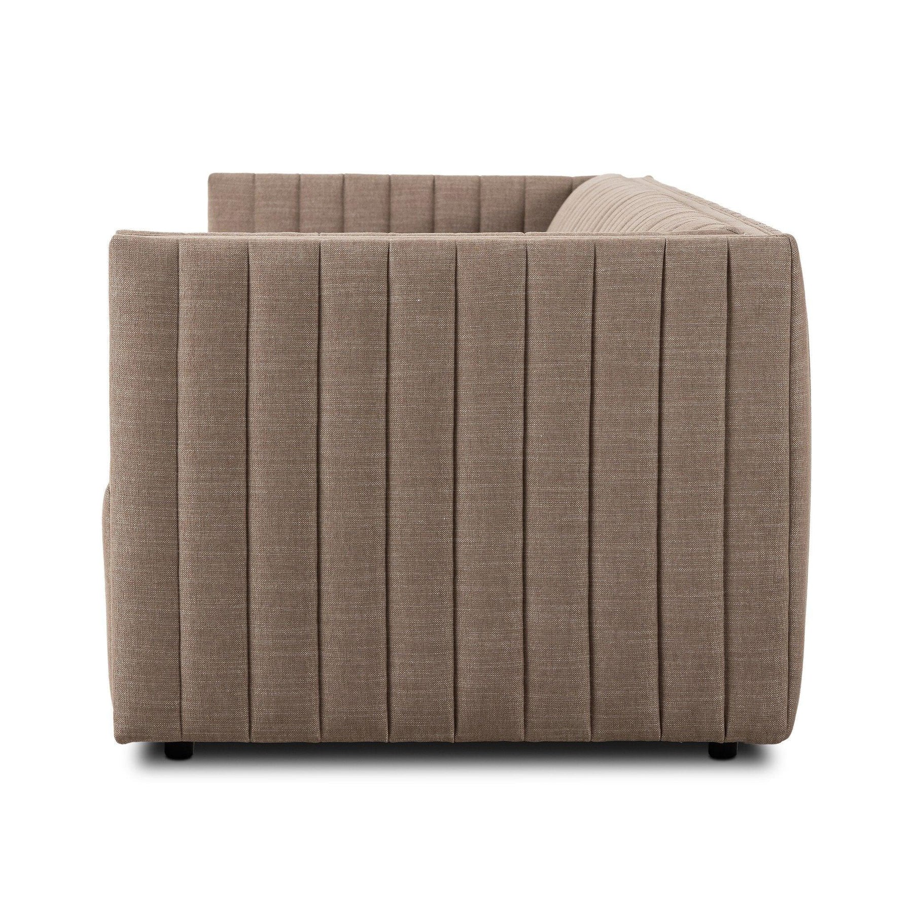 Velvety poly-blend seating takes on dramatic channeling and rich navy hue for trend-forward texture and sumptuous sit.