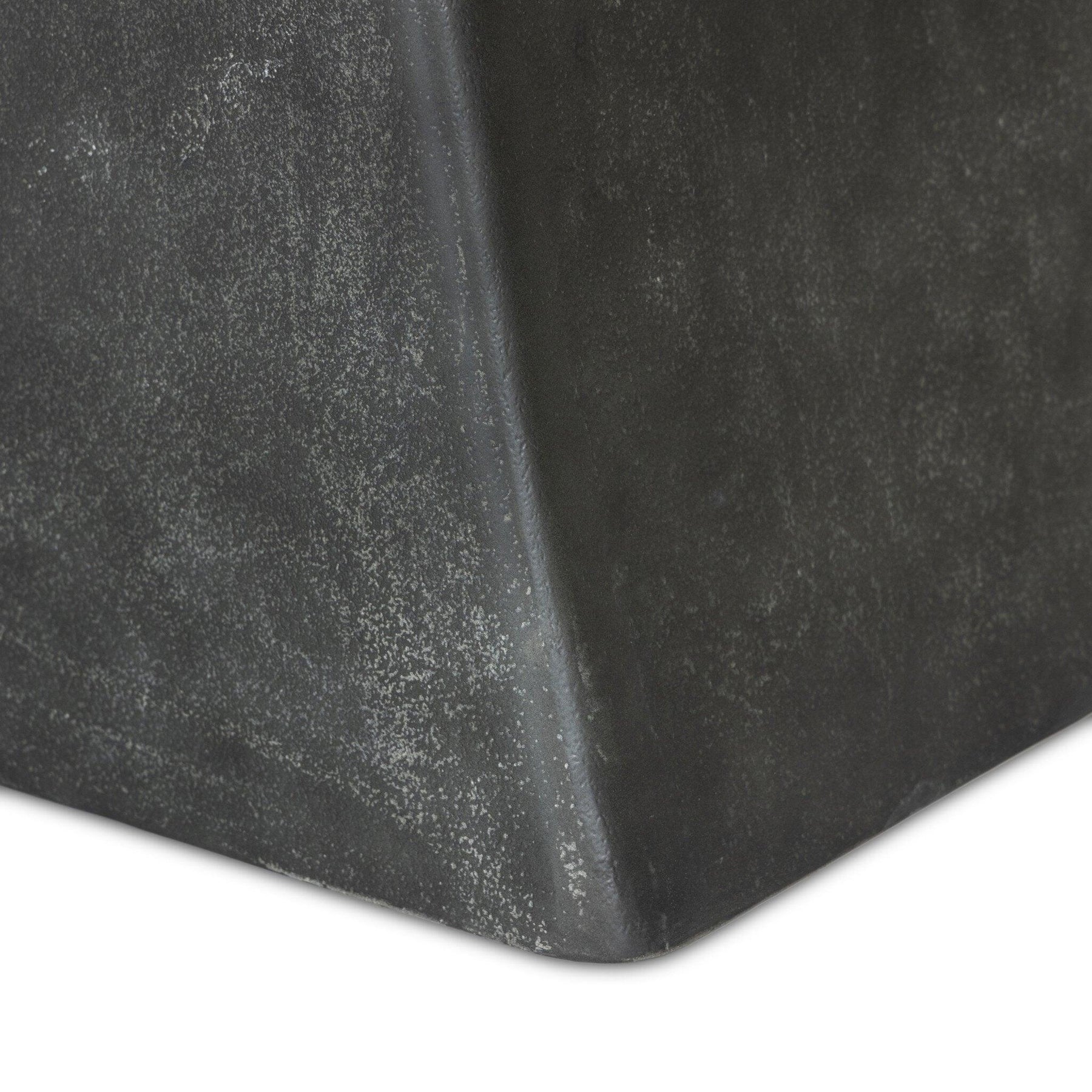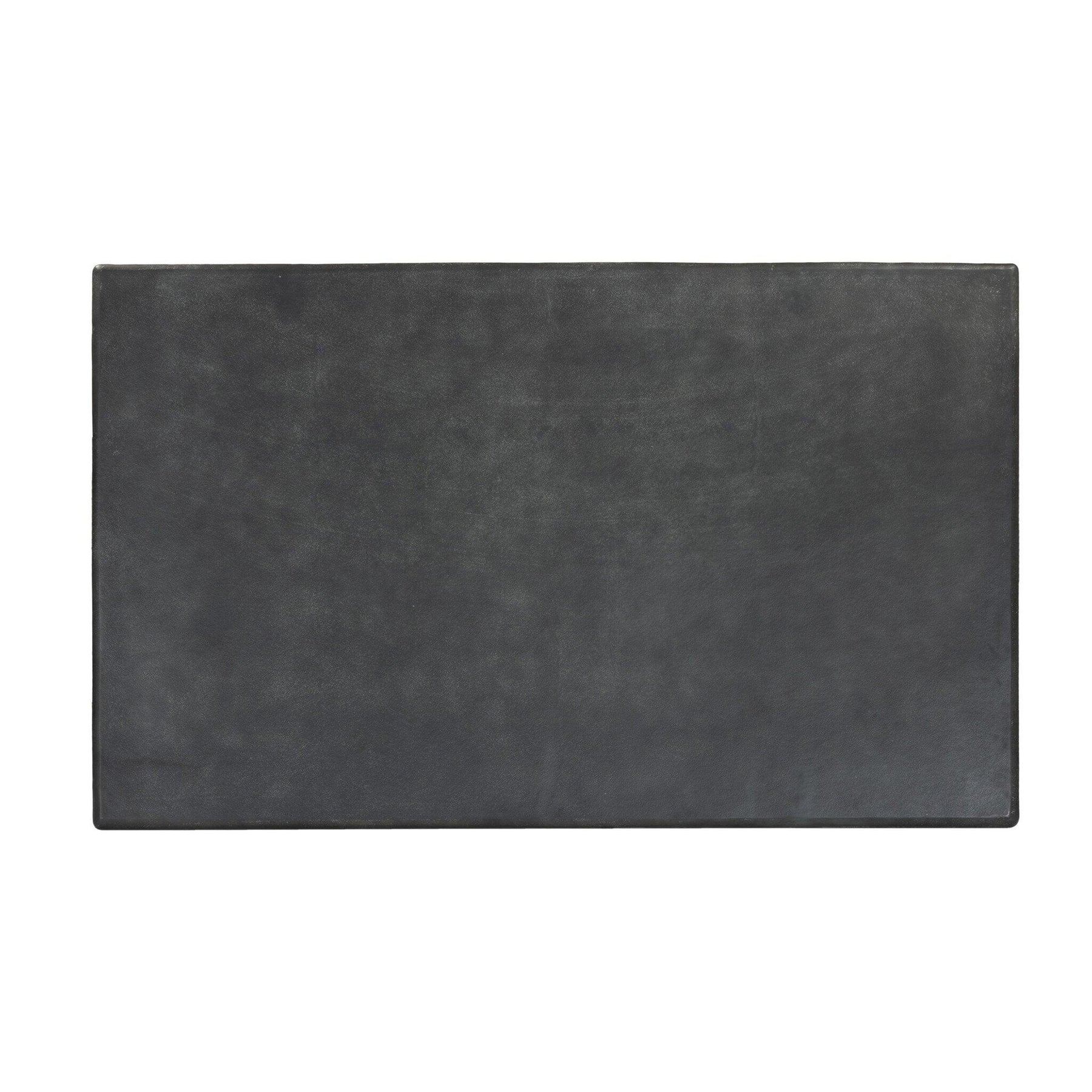 Aged grey aluminum and a tapered pedestal base bring sculptural presence to this rectangular table. Designed for versatility its clean lines and subtle texture make it a striking addition to indoor or outdoor spaces. Cover or store indoors during inclement weather and when not in use.