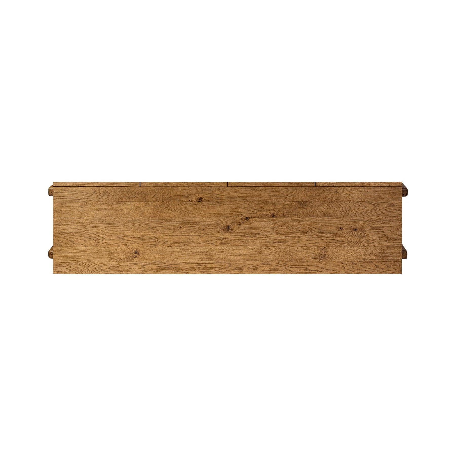 A curved cradle base brings an elevated artisan look to this worn oak media console. Generous interior storage creates endless space for your media needs with rear cutouts for cord management.