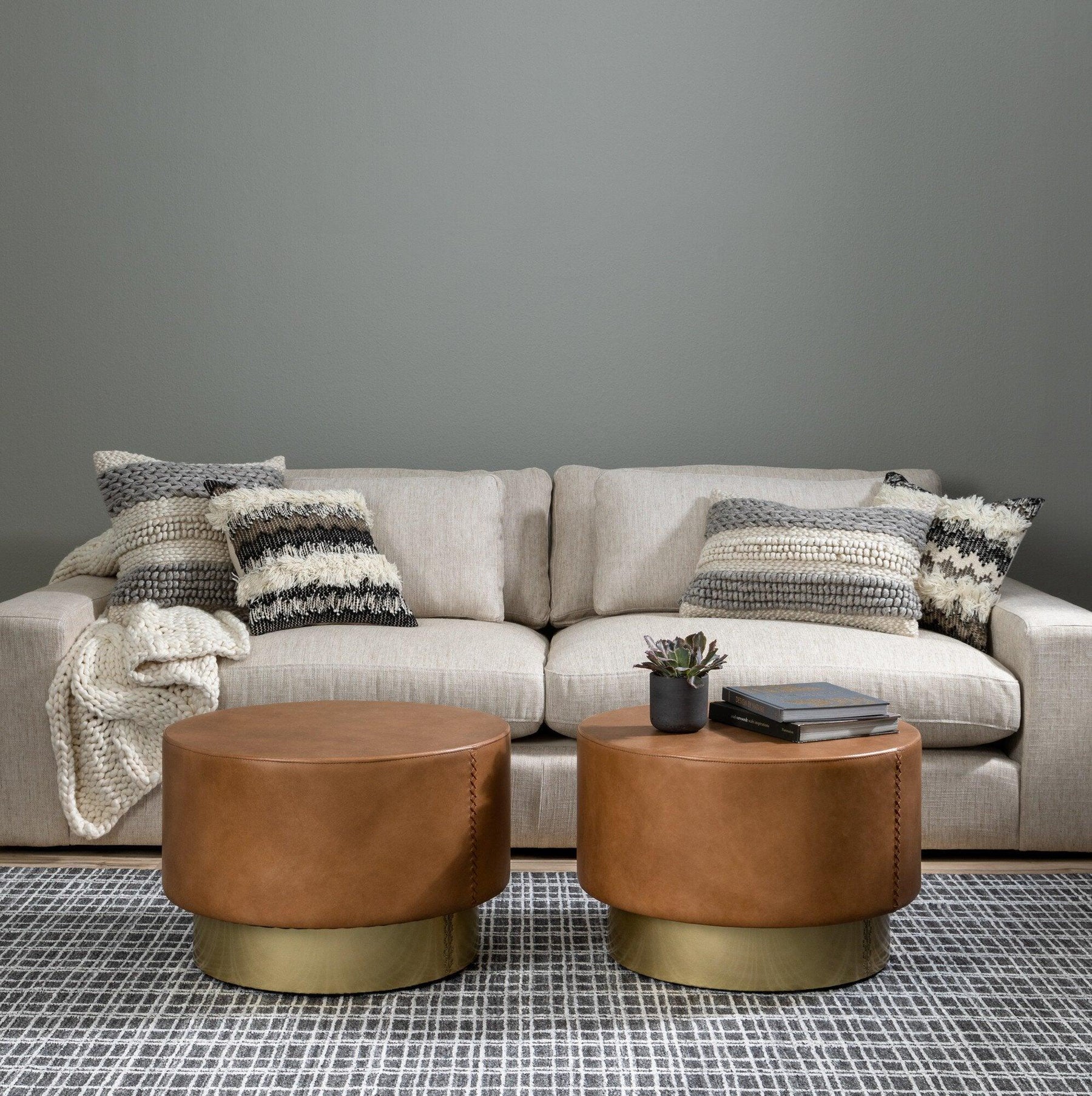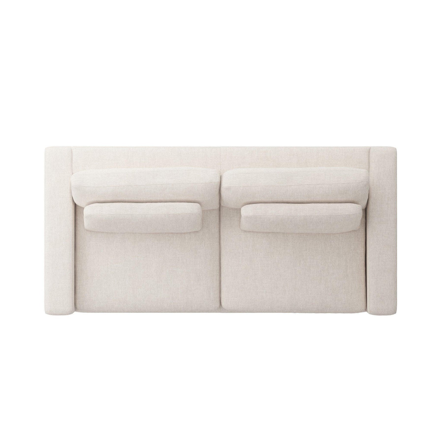 Deep modern and seductive. This dramatic spacious sofa is covered in a durable light neutral woven fabric that mixes well with any color palette.