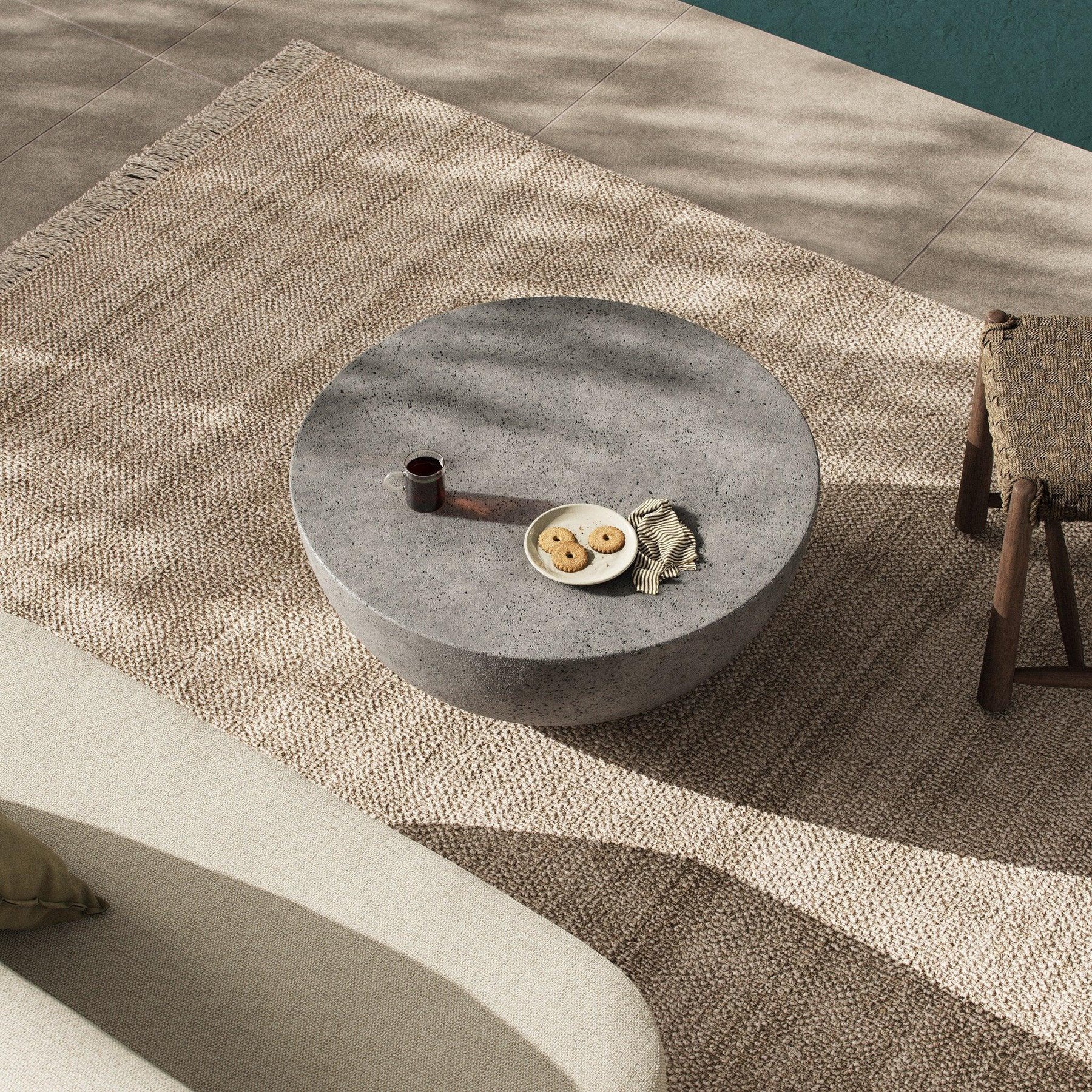 Highlight the raw beauty of concrete with a classic bowl-shaped coffee table. With a wide spacious surface and plenty of natural texture this timeless designs works beautifully indoors and out. Cover or store indoors during inclement weather and when not in use.