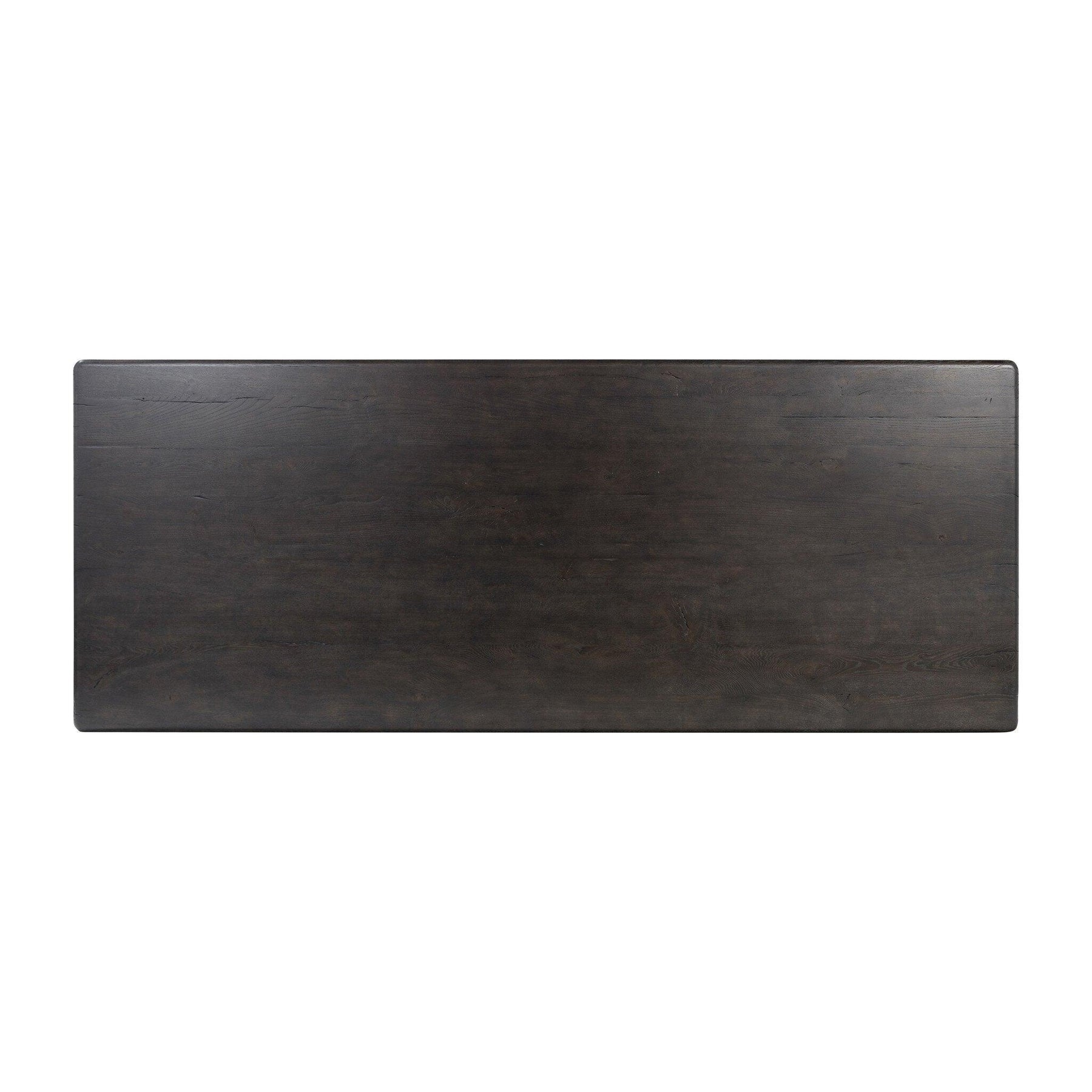 Designed in partnership with longtime SwayLiving collaborator Thomas Bina and Brazilian designer Ronald Sasson a grand-scale dining table is made from solid reclaimed French oak finished in a deep espresso. Rounded edges add a softer fluid look. Seats 12.