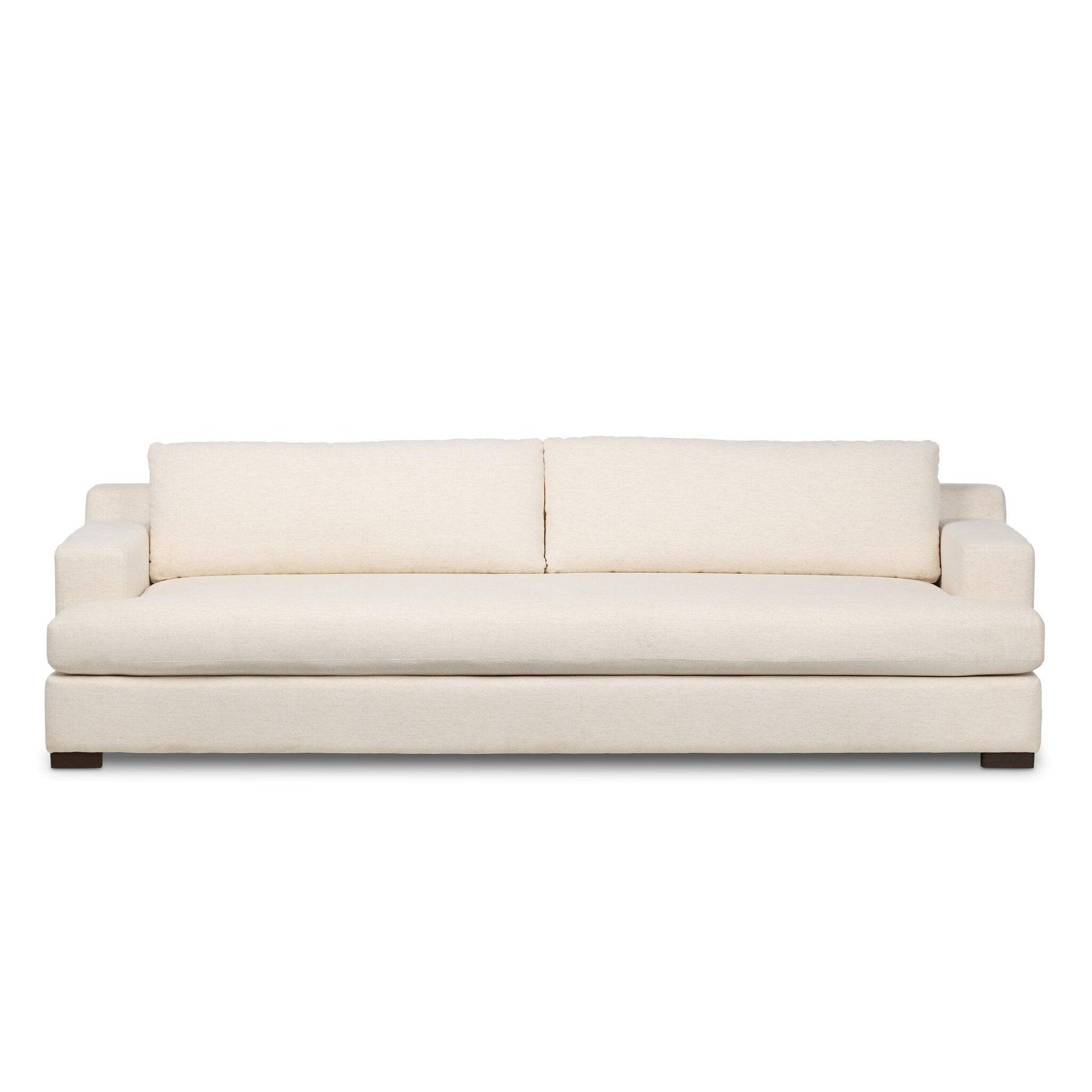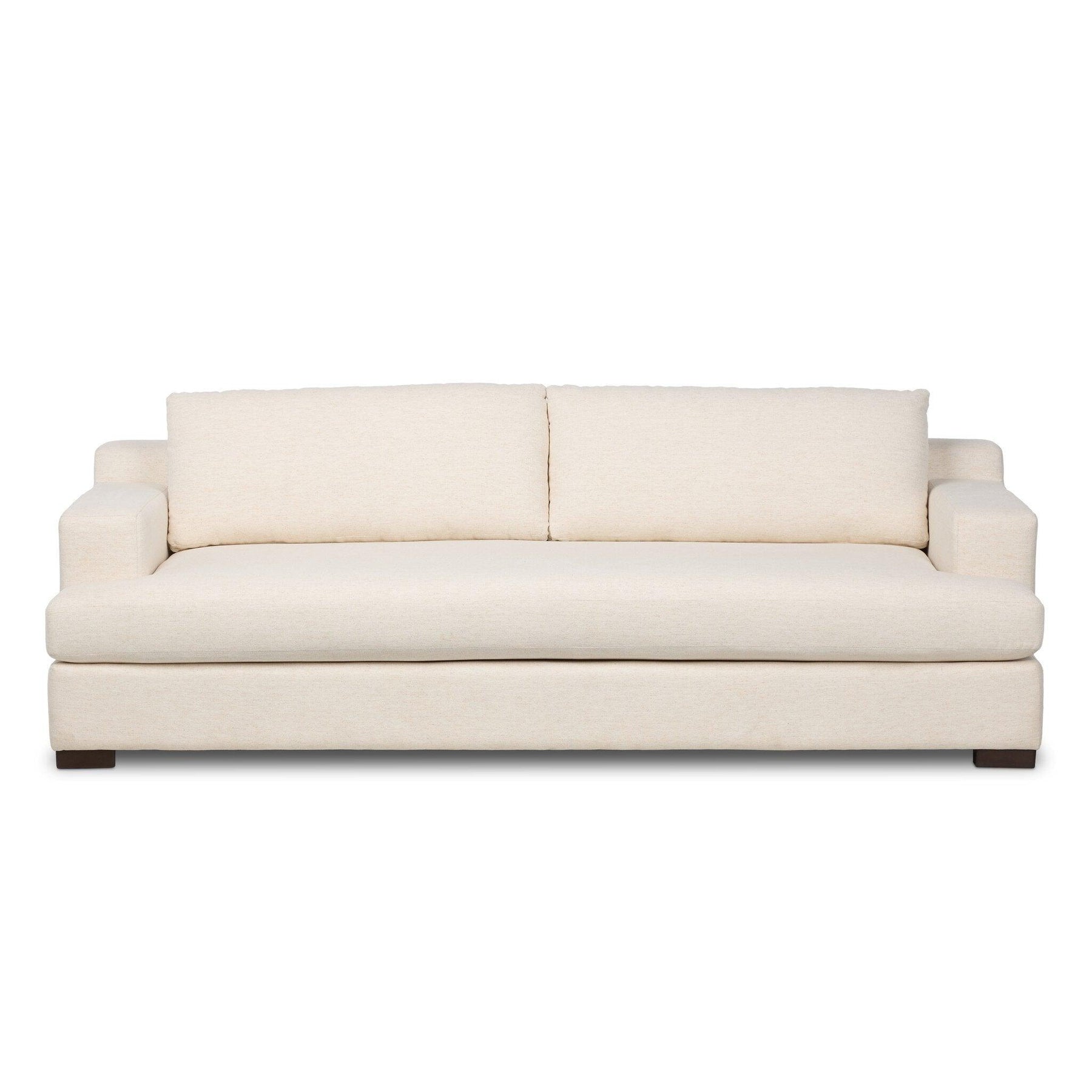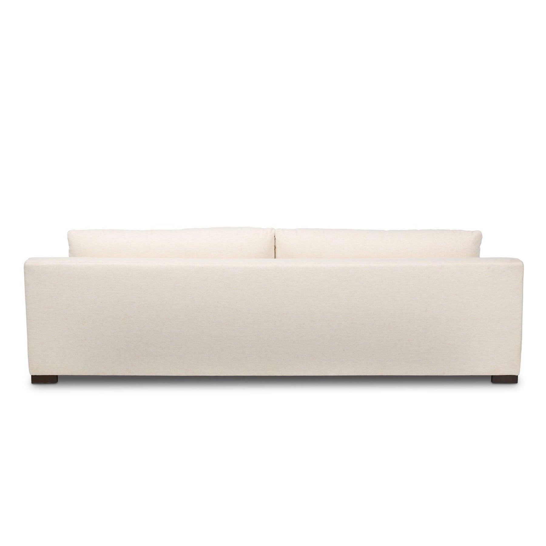 Modern shaping meets sink-in comfort for a sectional that invites you to relax a little longer. Wide arms and a slightly angled back are softened with T-shaped cushions and an exaggerated bench-style seat in soft foam with S-spring suspension for a supportive sit. Finished with solid wood chunky block legs. Soft easy to clean and free of PFAS Crypton® performance fabric is specially engineered for protection against stains moisture and odor.