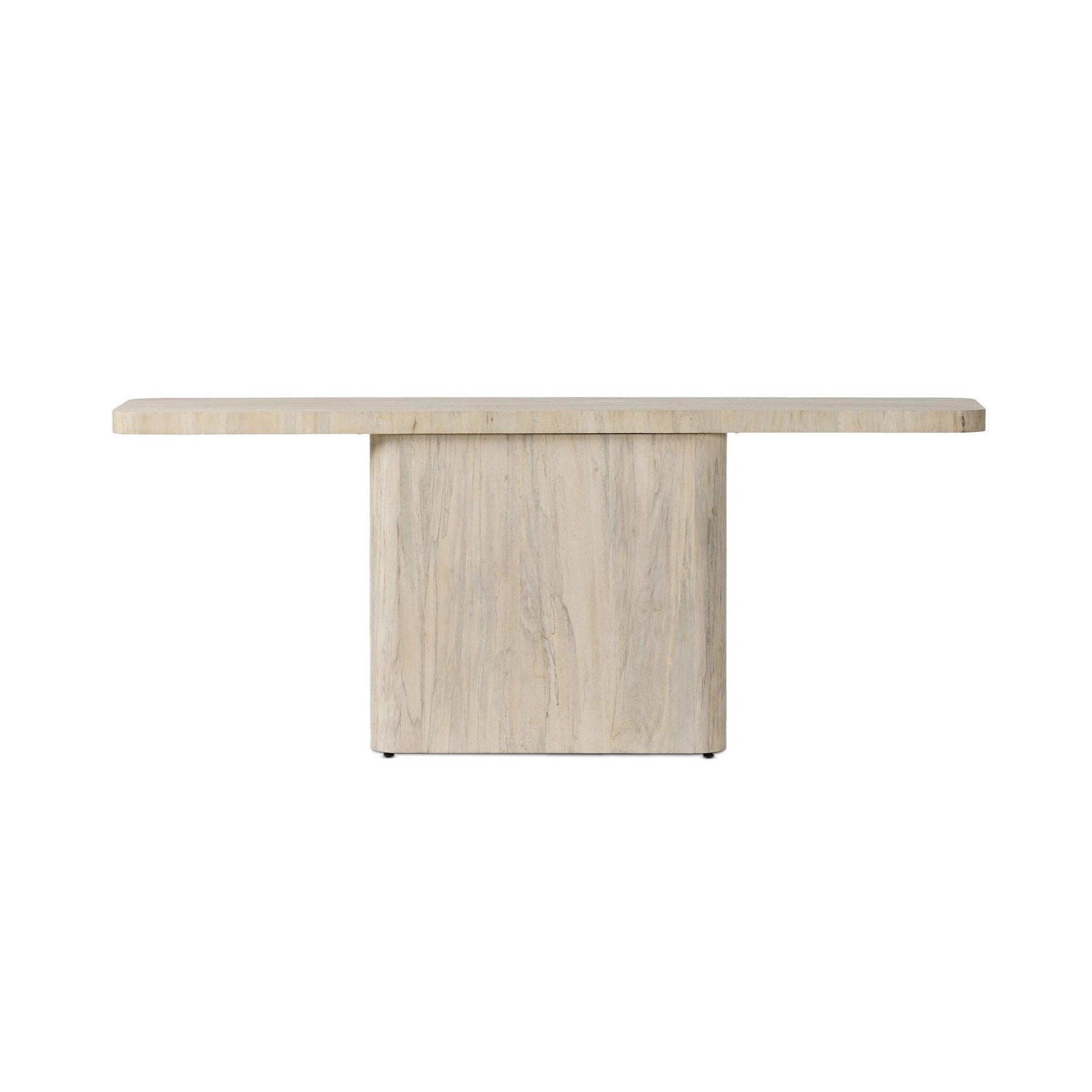 Make a statement with this console table of spalted primavera with a clean bleached finish. An exaggerated overhang top elevates otherwise simple shaping for a dramatic look that can move between spaces with ease.