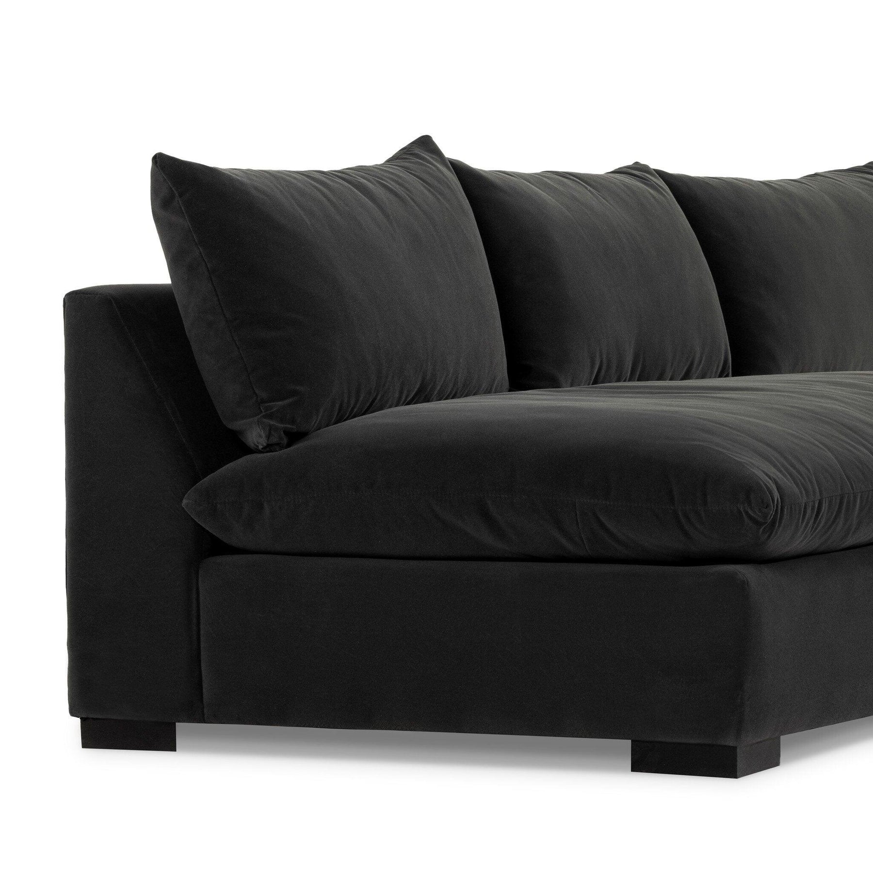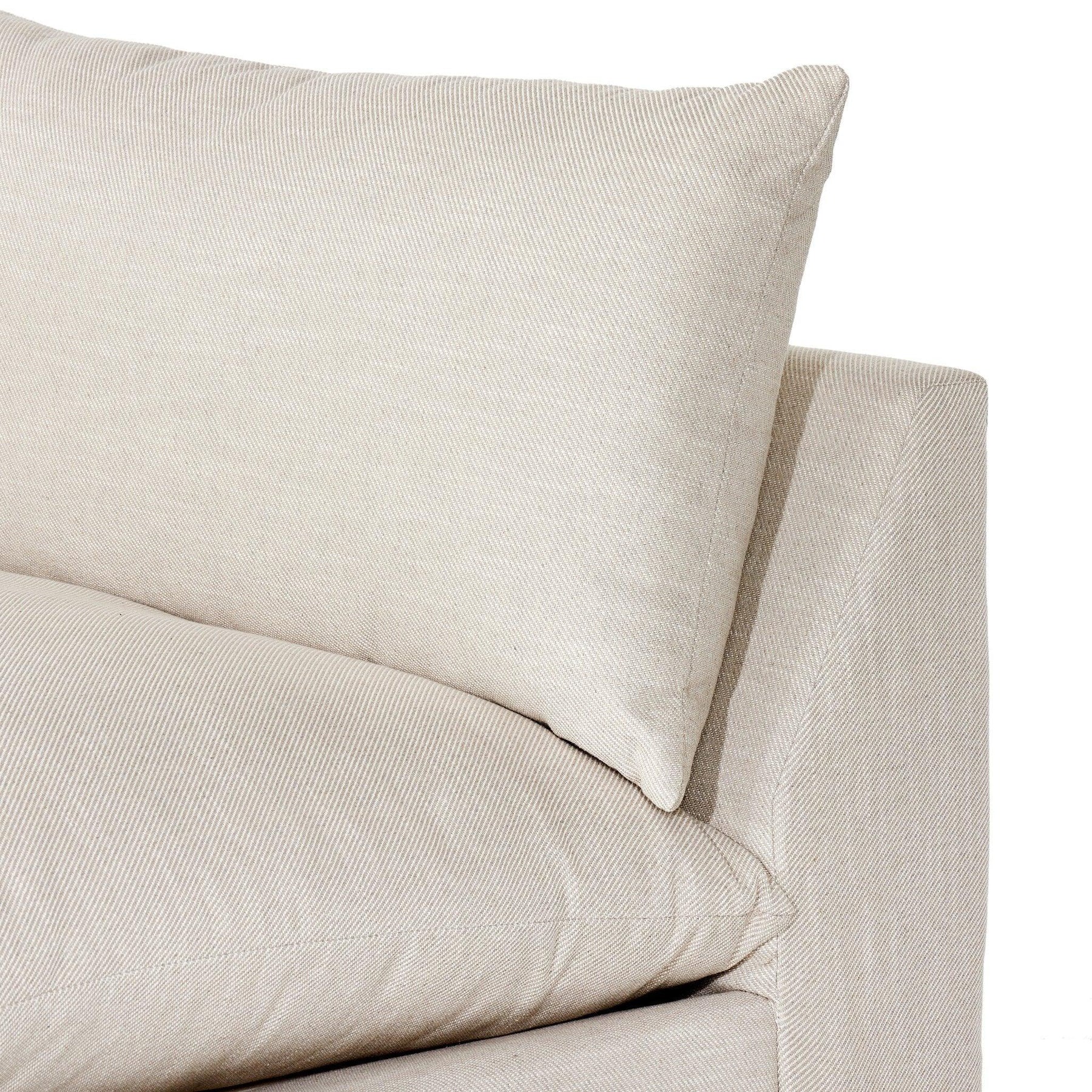 Welcome to the modern lounging essential. A simplified sectional is upholstered in a soft durable stain-resistant Crypton fabric in an inviting oatmeal. Performance fabrics are specially created to withstand spills stains high traffic and wear ensuring long-term comfort and unmatched durability.