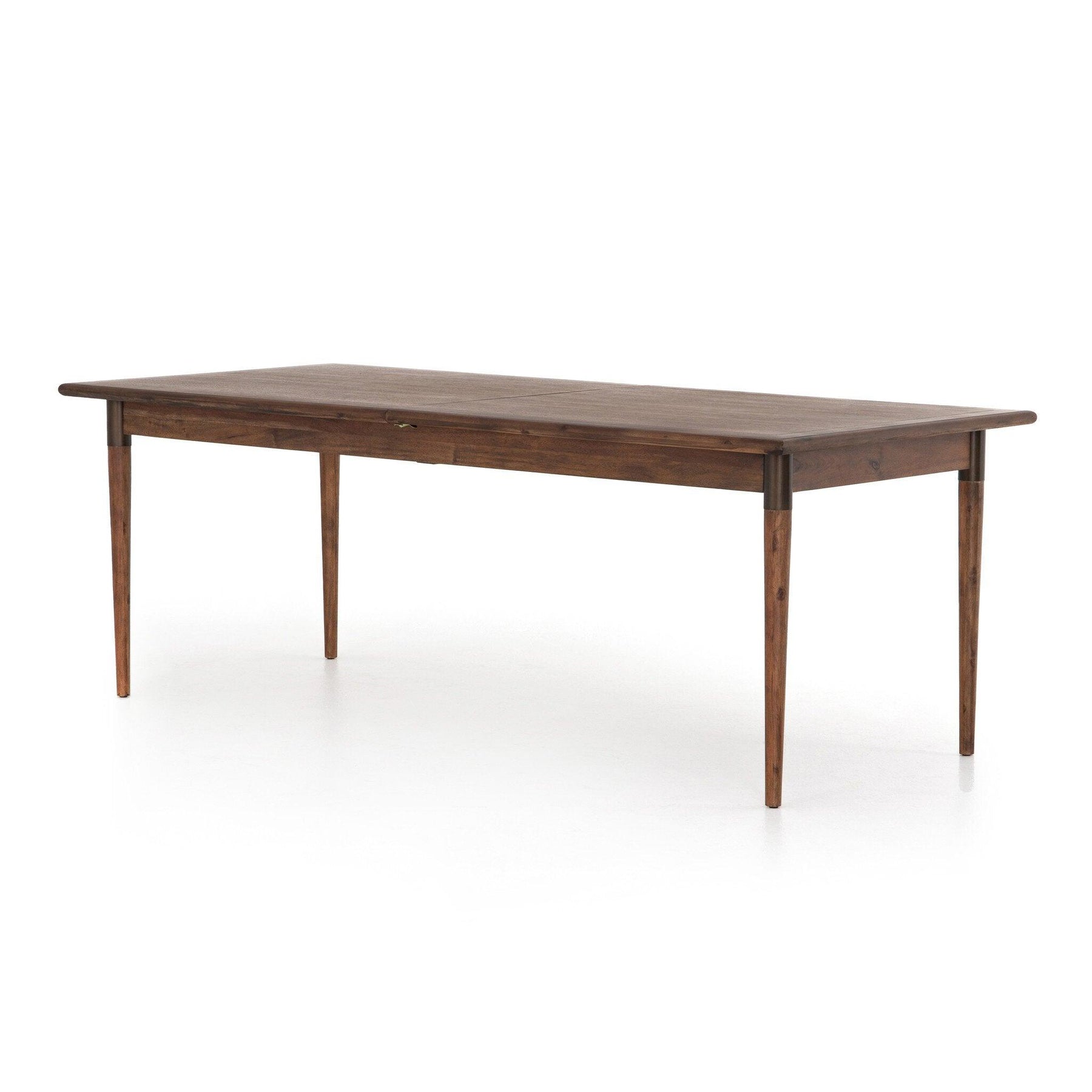 Style with flexibility. This rectangular tabletop is finished with cone-tapered legs and iron detailing speaking to Scandinavian modernism. Expansion from 84" to 104" means more space when company calls.