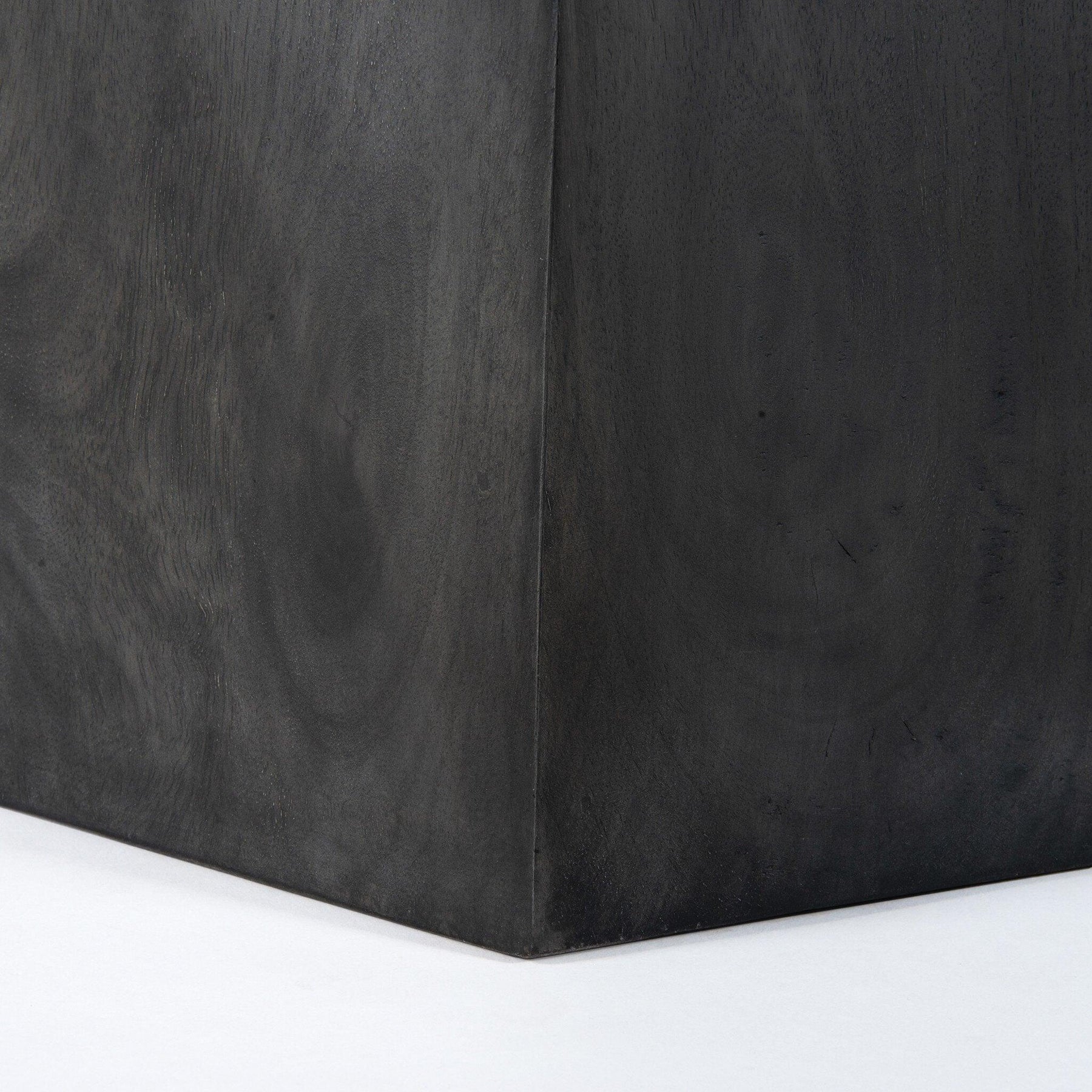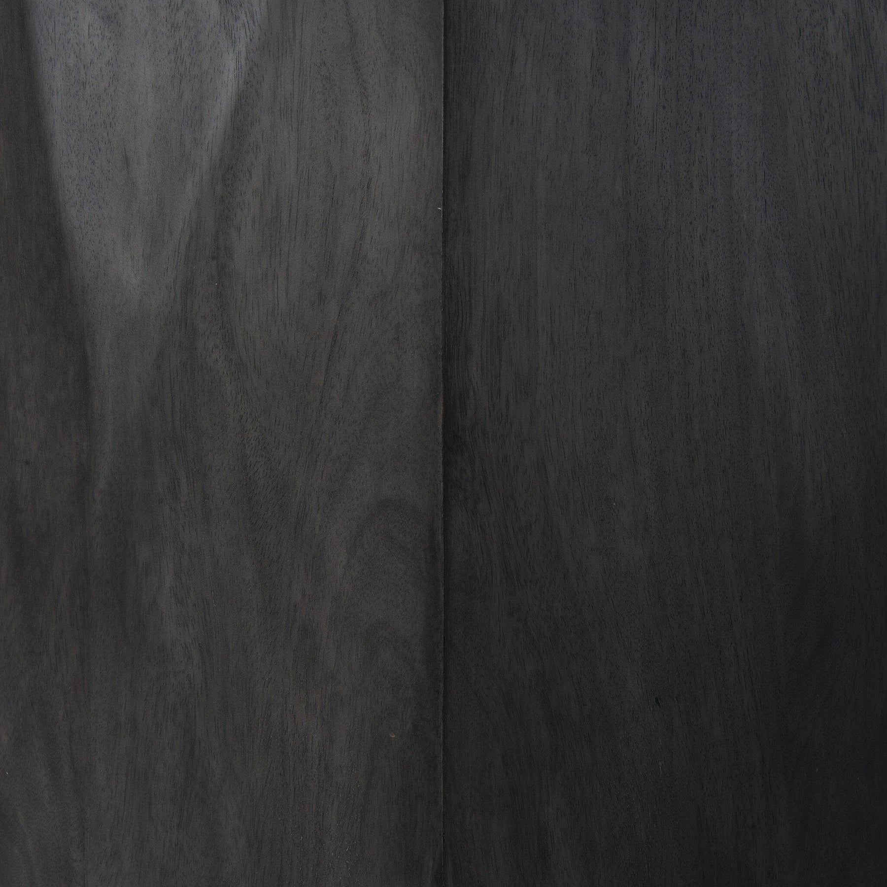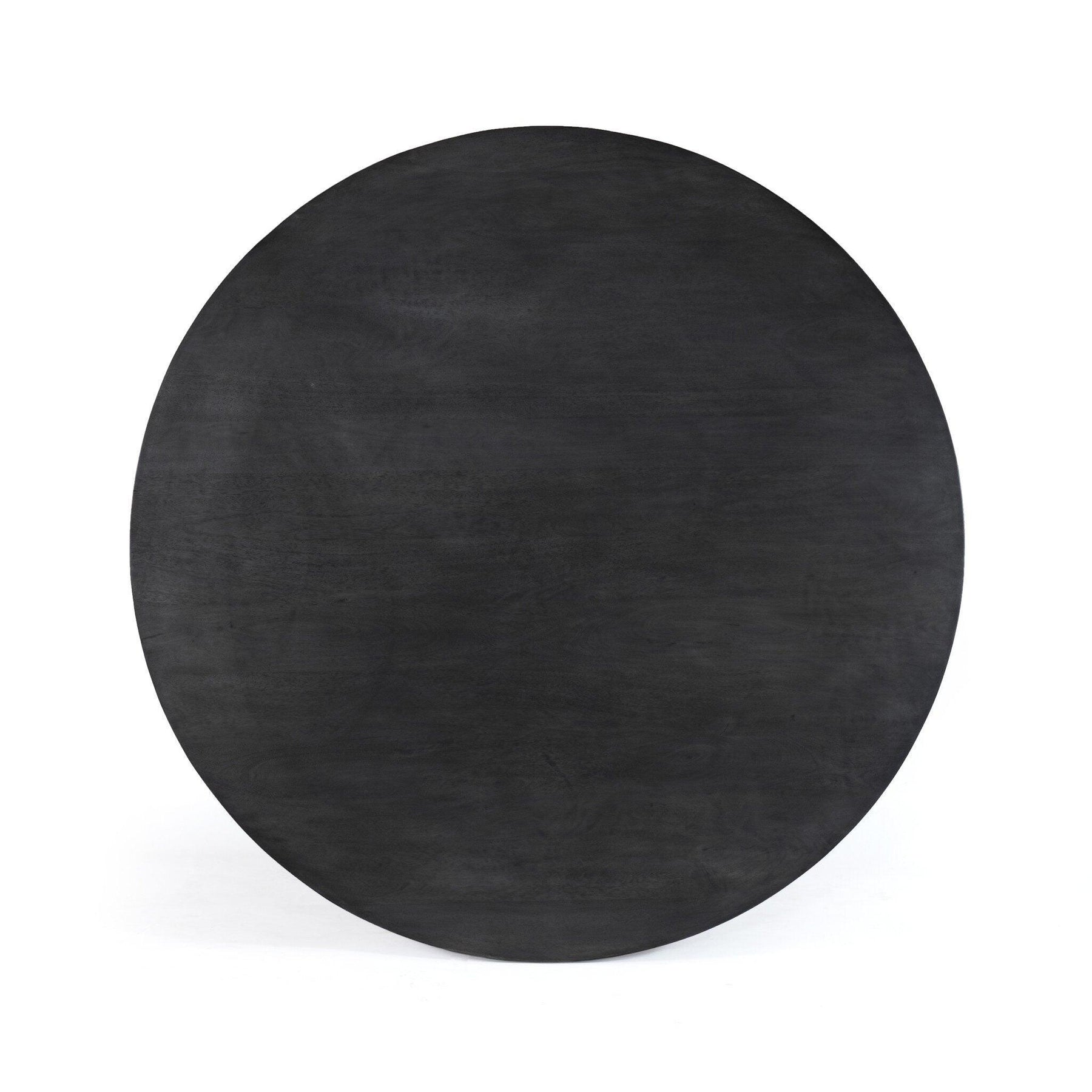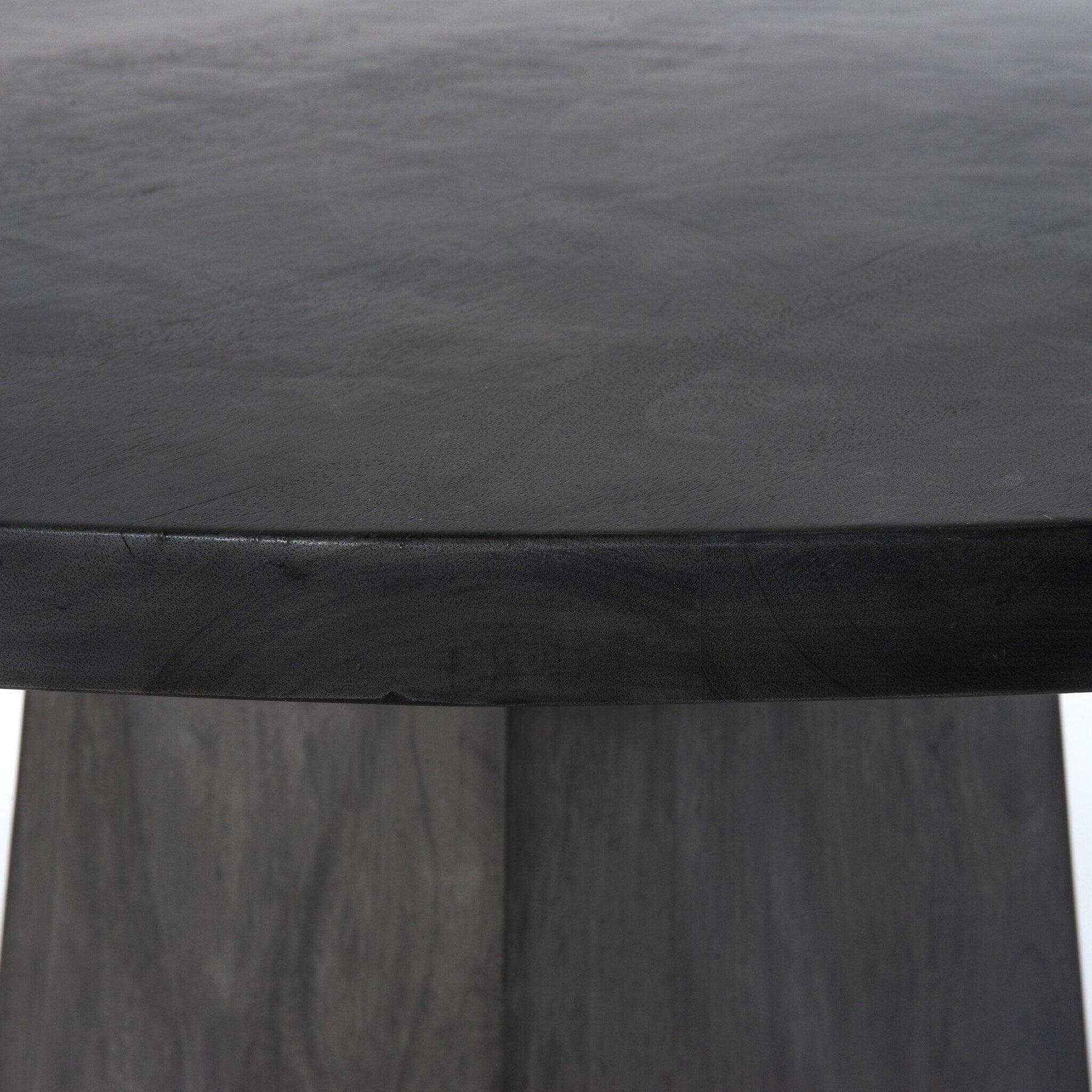 The traditional rounded dining table gets a style upgrade with a geometric spin on its substantial base. Dark coal-finished mango adds drama to an otherwise simple form.