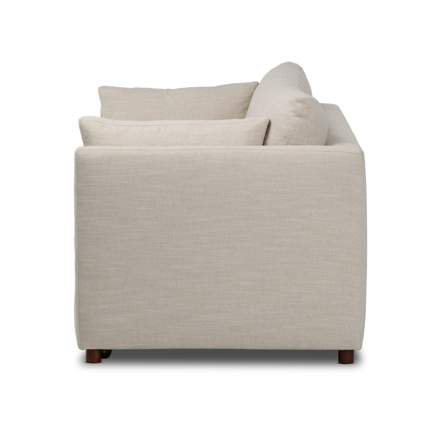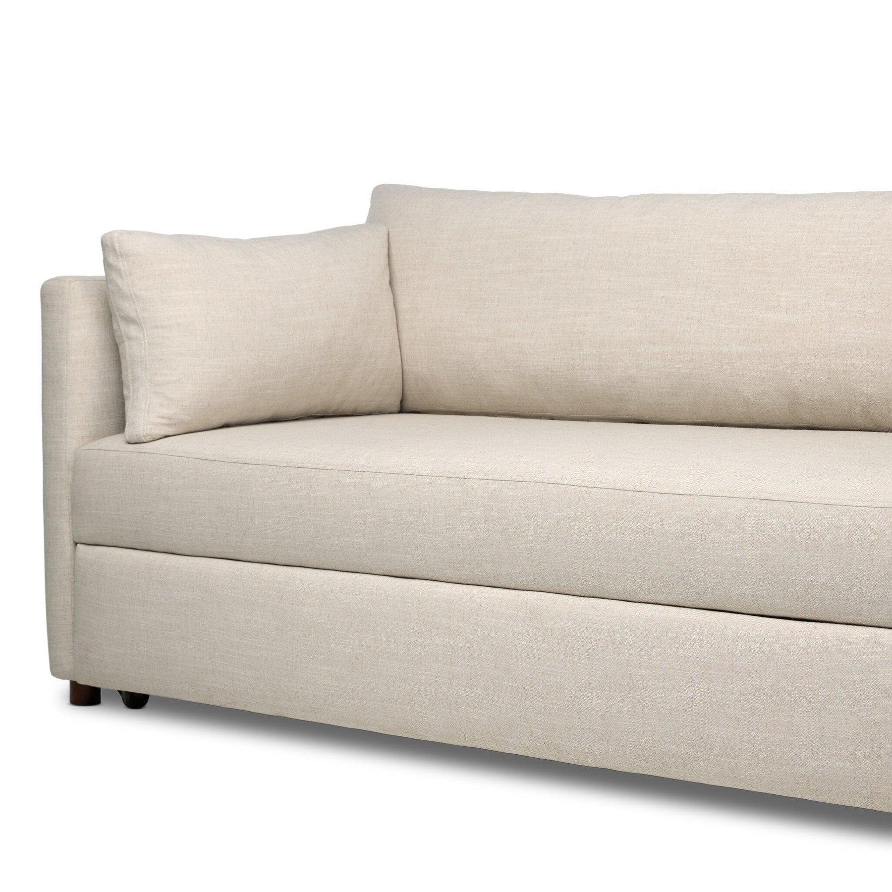 This cleverly designed sleeper sofa hides a Queen-sized sleeping surface within its modern silhouette. With a simple roll-out and counterbalanced mechanism it effortlessly transforms into a bed making it a space-saving solution with hidden functionality. When unfolded the cushions form a comfortable bed perfect for overnight guests or movie nights — no extra mattress necessary.