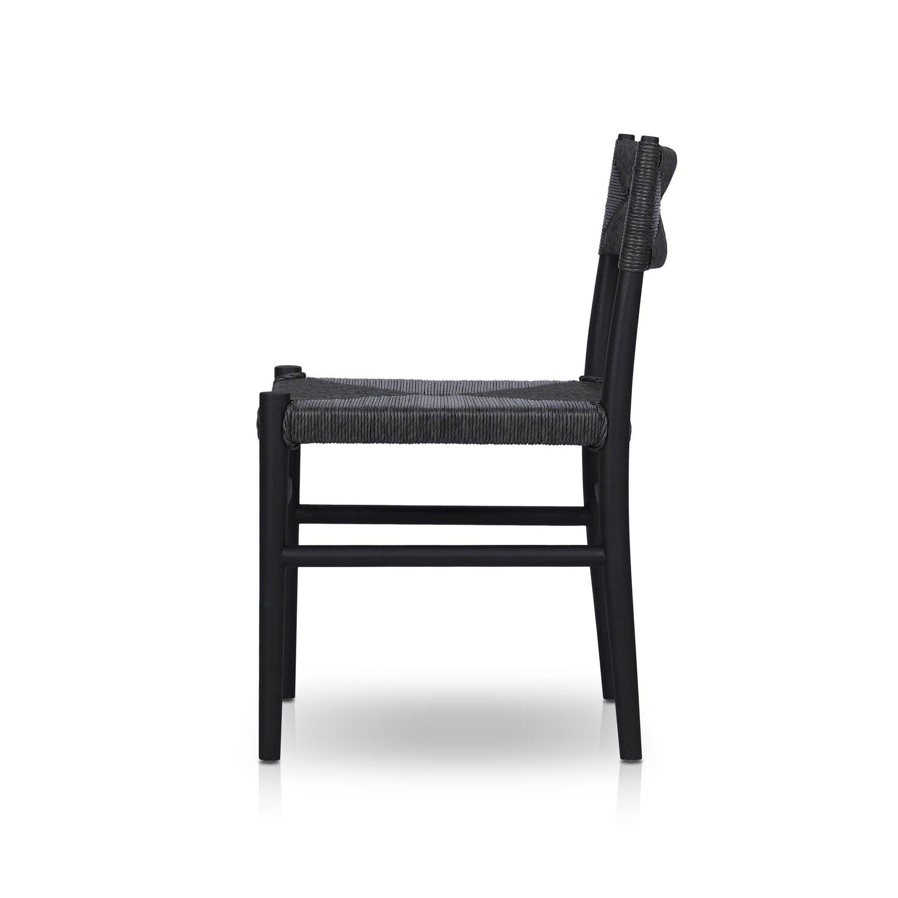 Slim tapered teak frames this woven all-weather wicker outdoor dining chair. Cover or store indoors during inclement weather and when not in use. Our Weatherproof Outdoor Dining Chair Cover in size small fits this chair.