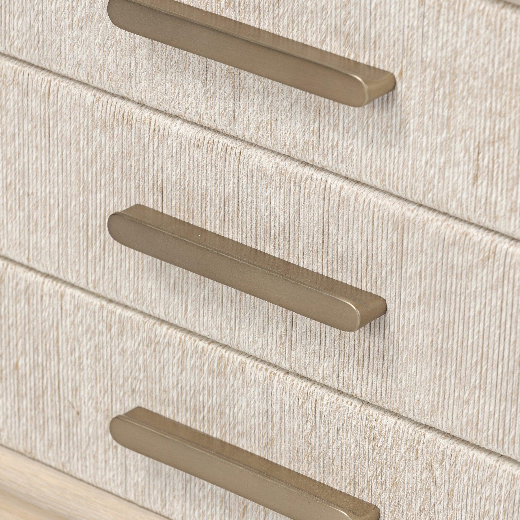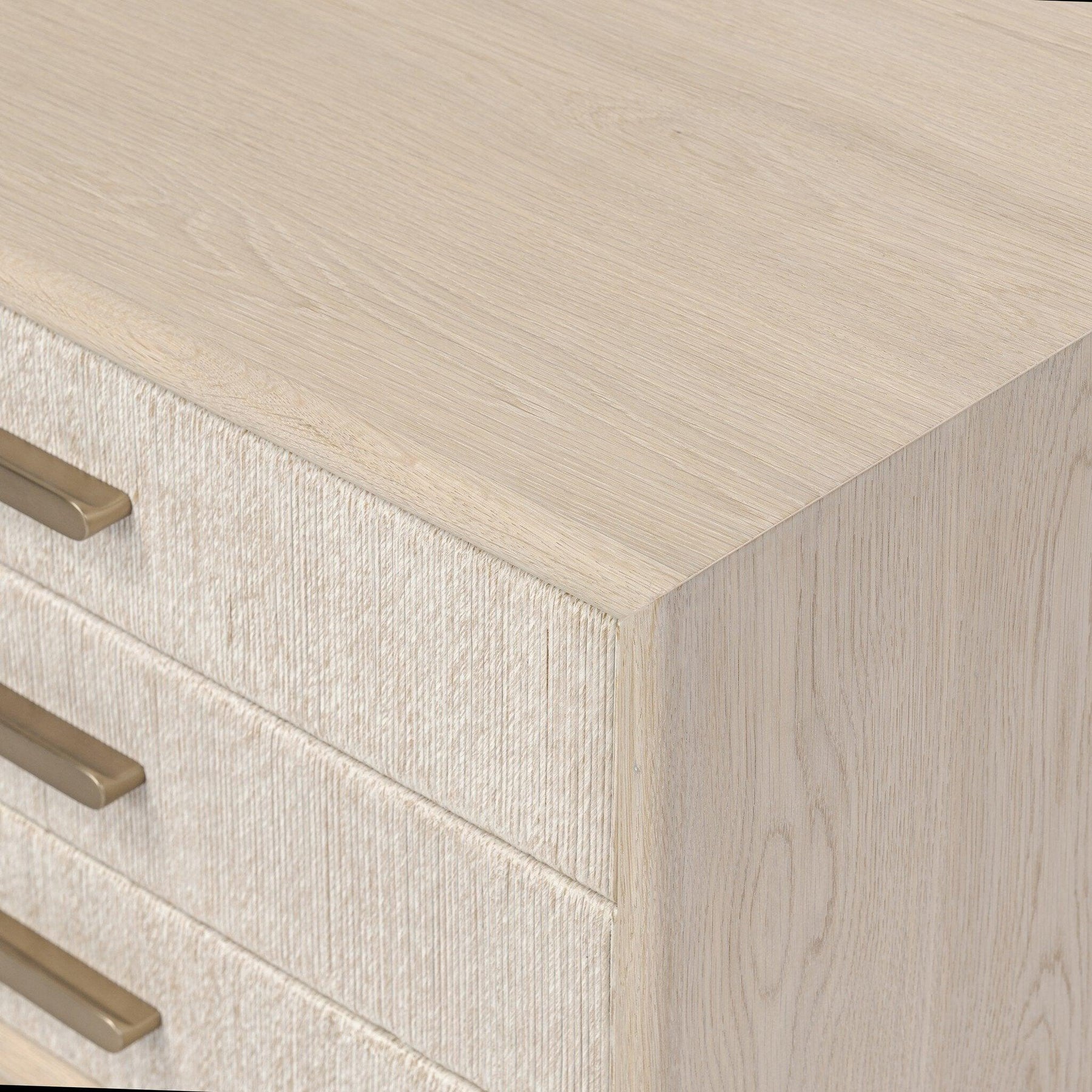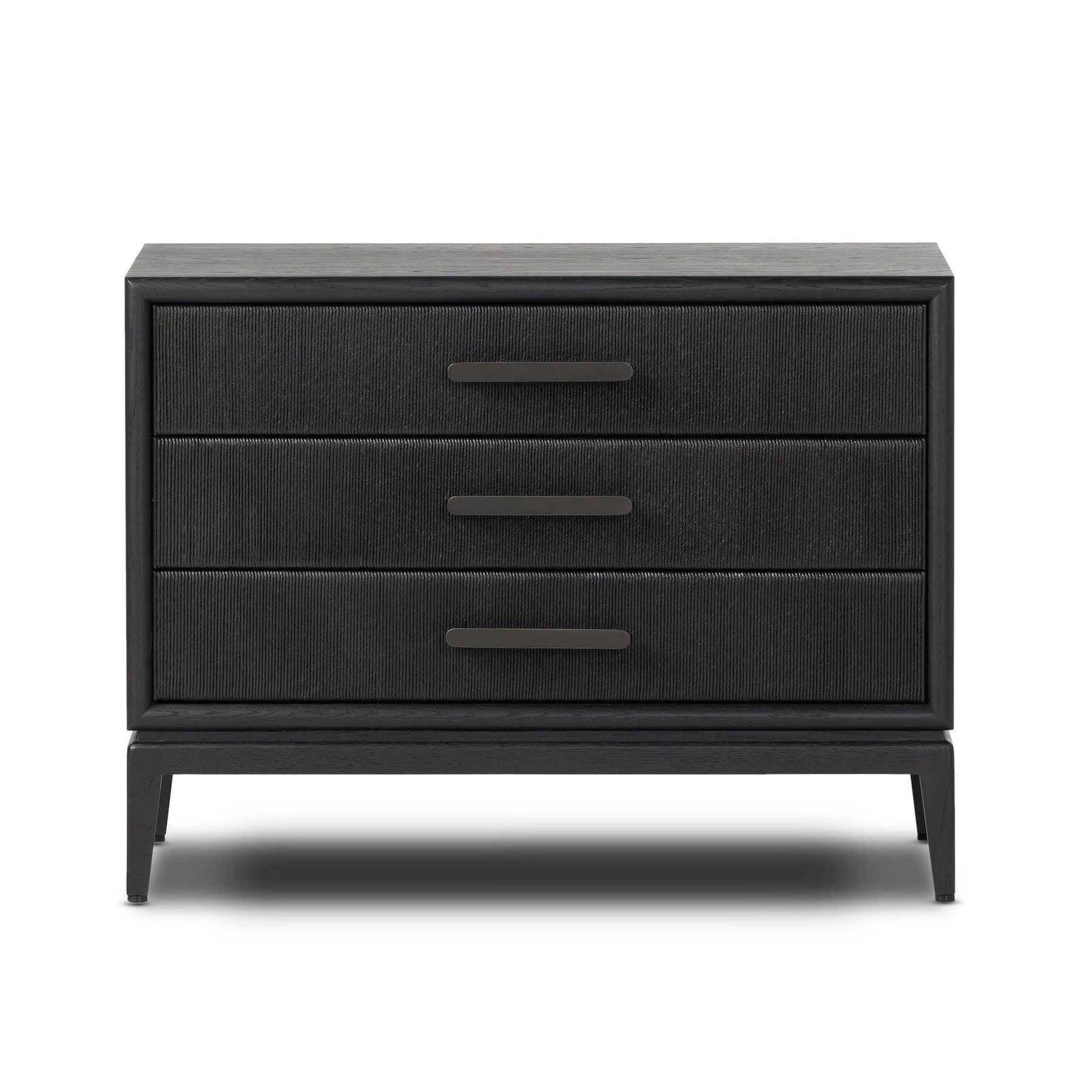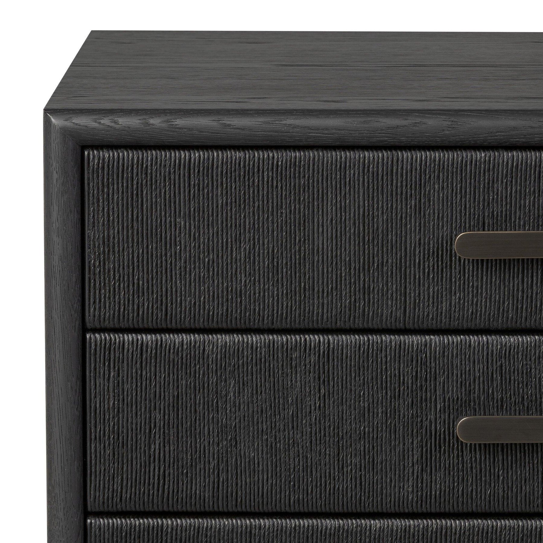 Elevate your bedside storage with a nightstand of black-finished oak. A smooth top pairs with three drawer fronts of woven paper cord for a dark rich look that will work into your bedroom collection beautifully.