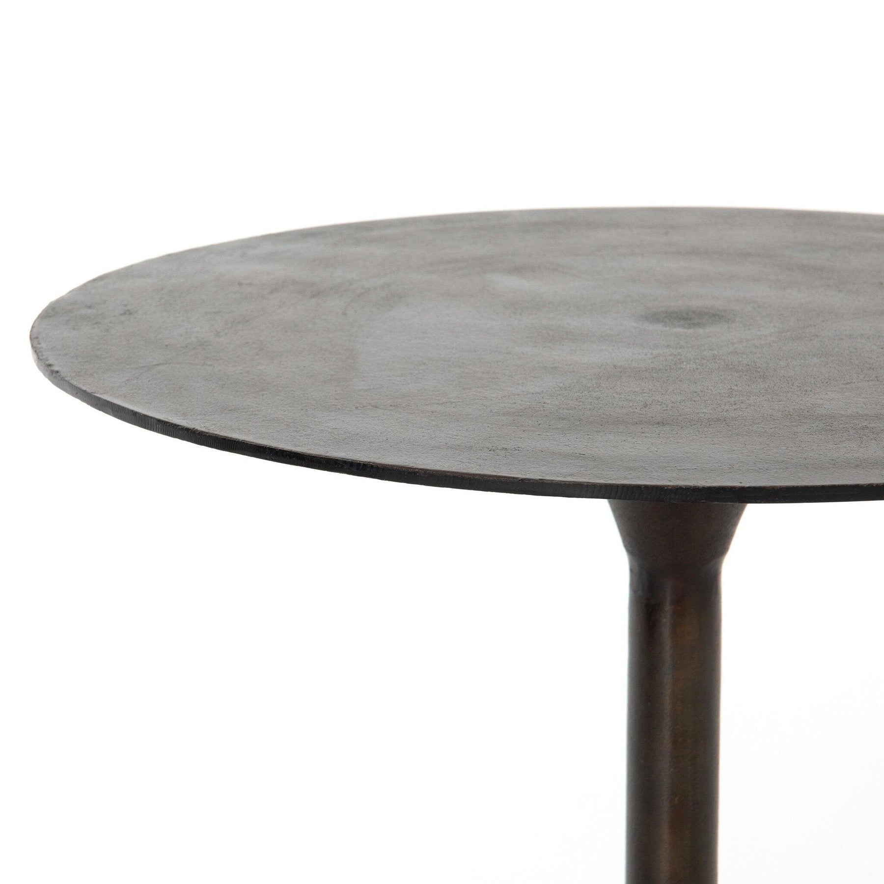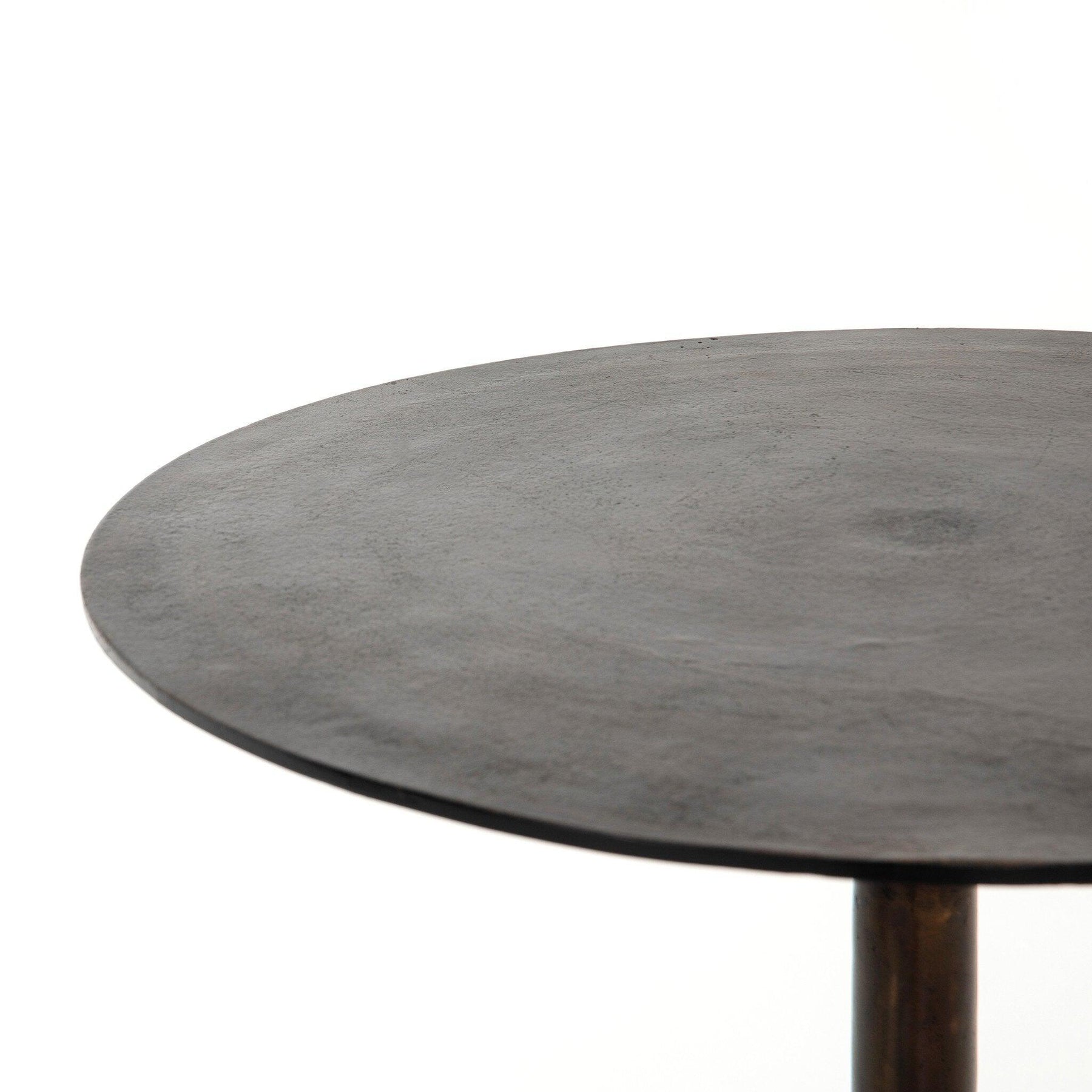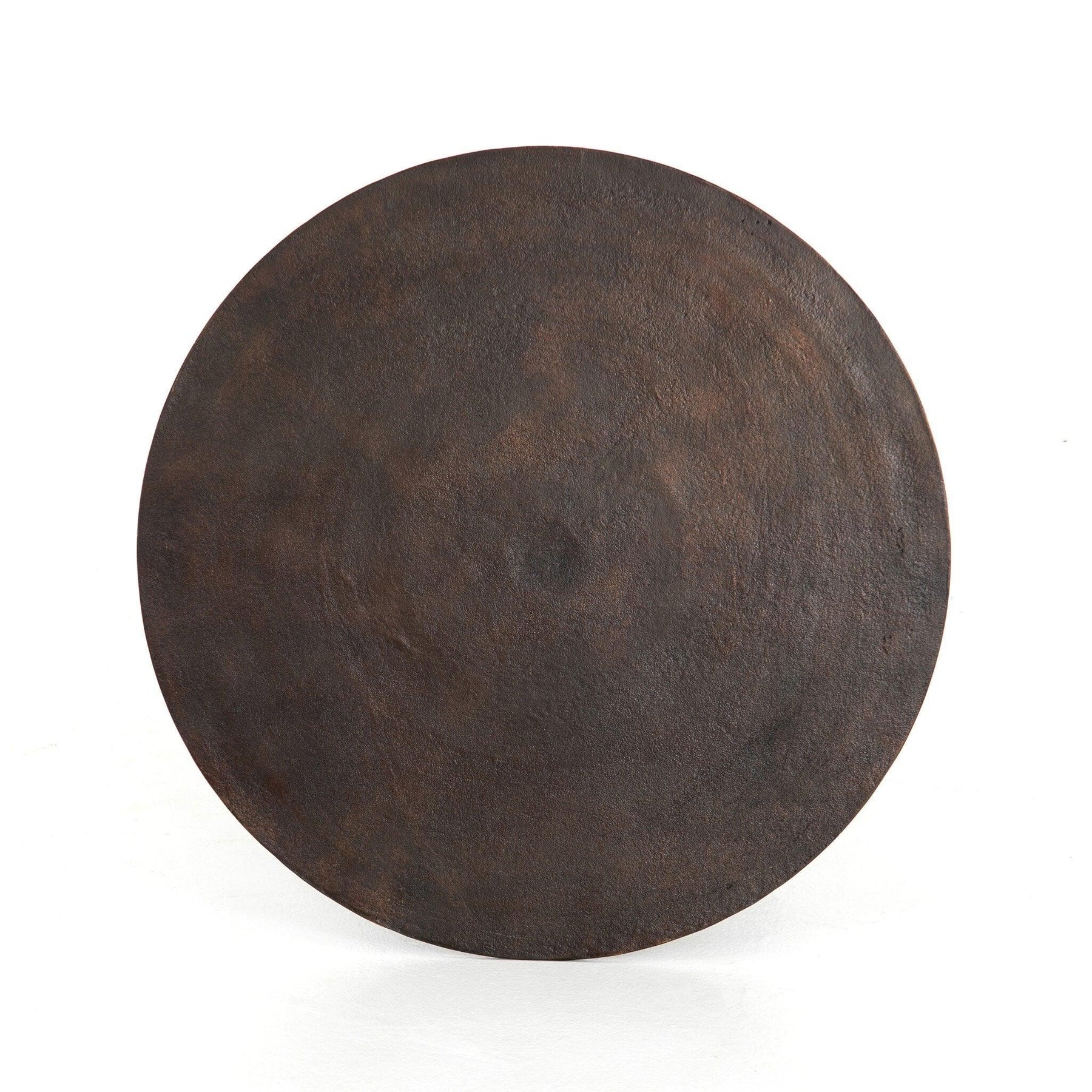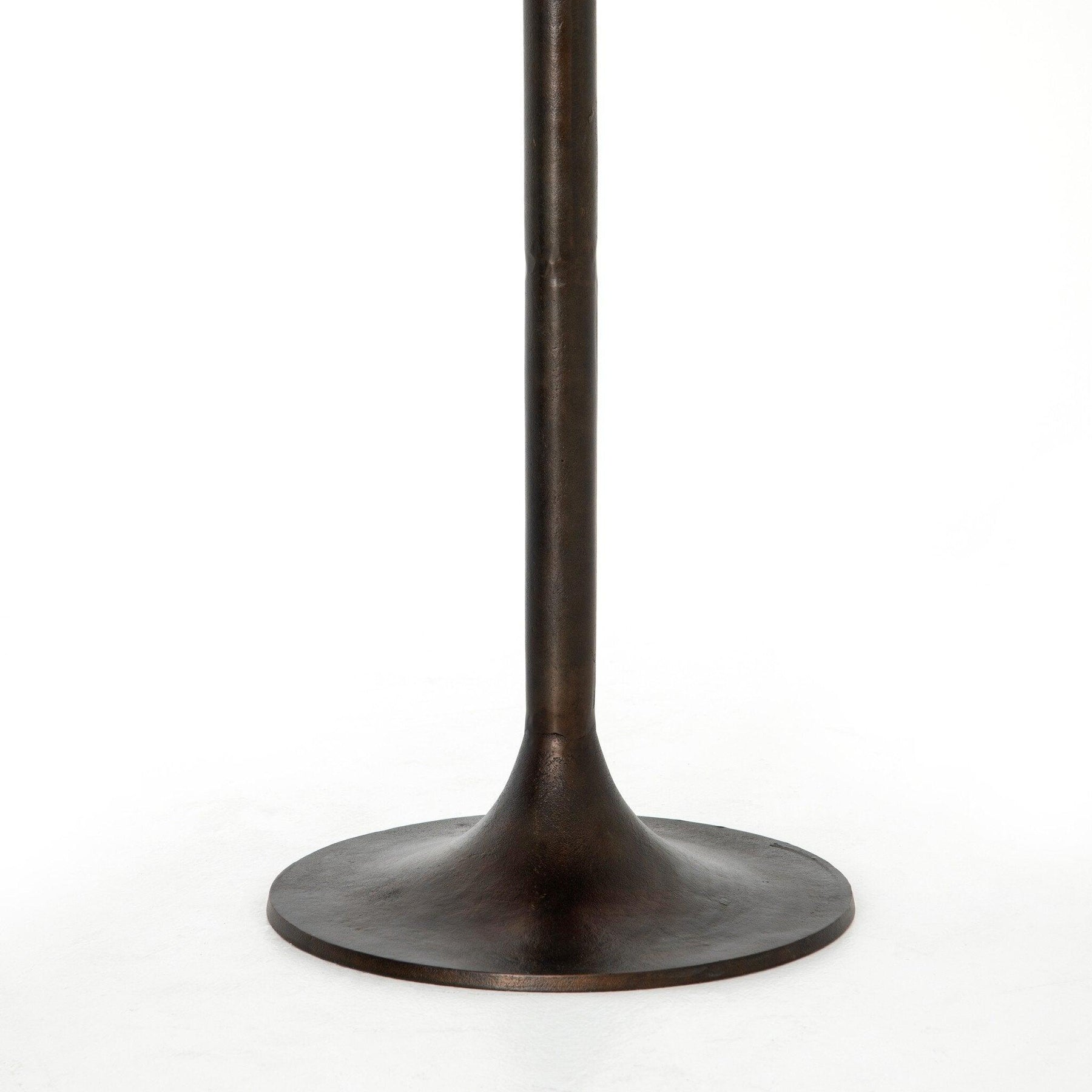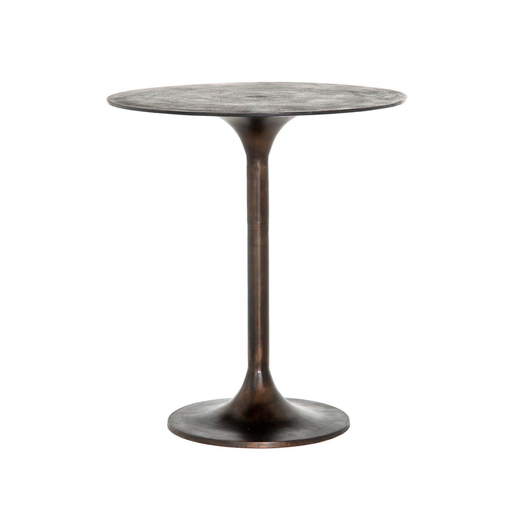Classic tulip shaping in textural cast-aluminum makes for a modern pub table. Finished in antique rust to bring out alluring highs and lows. Great indoors or out — cover or store indoors during inclement weather and when not in use.